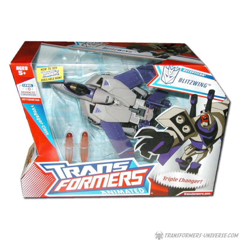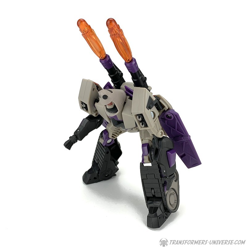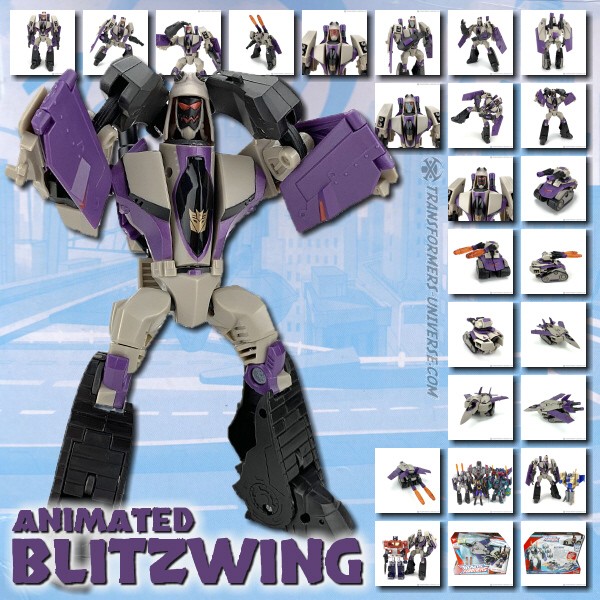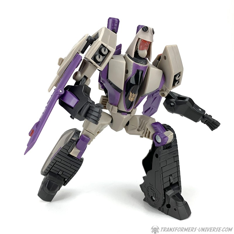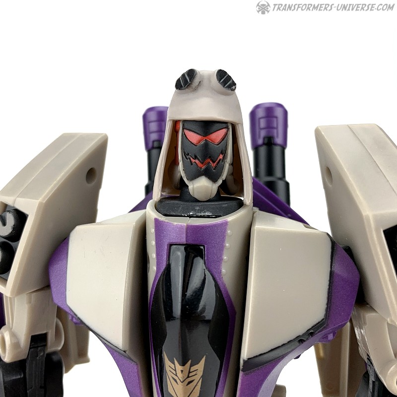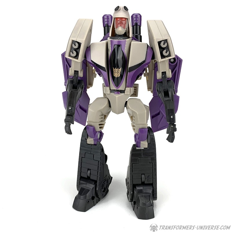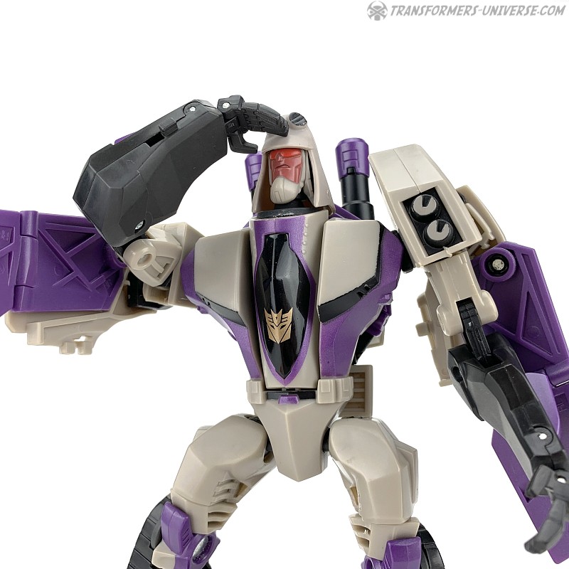 Blitzwing looks pretty much exactly as he does in the Animated cartoon and is a very posable, nicely detailed robot. So absolutely no complaints on this front. His posability is only slightly restricted because of the wings he carries on his arms, but that's easily compensated for. The only real drawback here is the fact that there is no way for Blitzwing to flip his two cannons forward onto his shoulders in robot mode. If he wants to fire, he has to bend over really far.