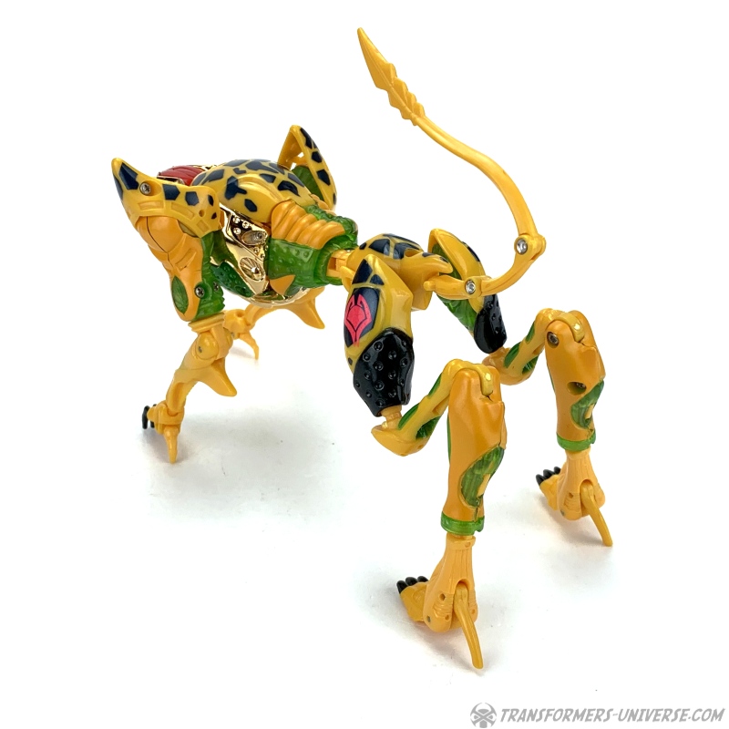 Alternate Mode: Once again Cheetor transforms into a cheetah, a techno-organic one in this case. It's really just the robot going down on all fours and switching his robot head for a beast head (which takes far longer than the rest of the transformation). The cheetah doesn't look bad, but the proportions are rather exaggerated. Extremely long limbs, very slim lower body, powerful chest, you get the picture.