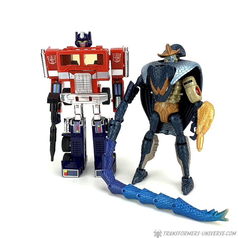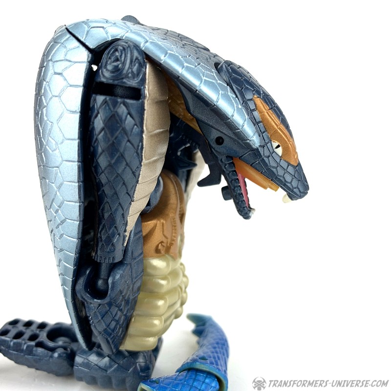 Remarks: Cohrada is part of the Japanese-exclusive Beast Wars Neo series and was, to my knowledge, never sold outside Japan. I think he is actually the first snake transformer ever (predating Night Viper by a year) and his being a Cybertron/Maximal is unusual given his beast mode. Still, he makes for a nice figure, especially in beast mode. I wouldn't call him a must-have, but if you're into beast Transformers and get an opportunity to buy this one for a decent price, I'd recommend doing so.