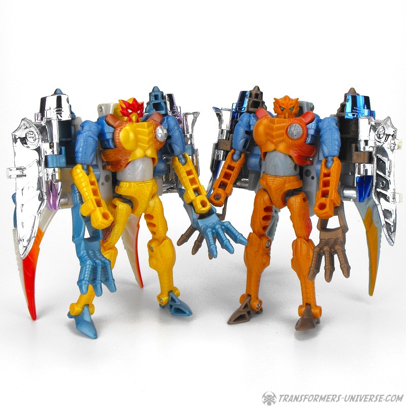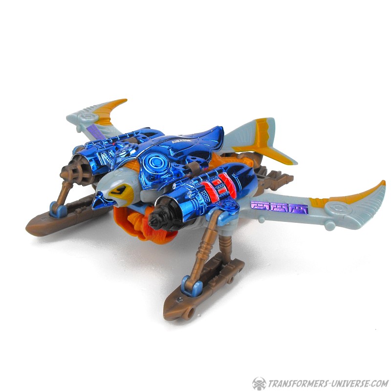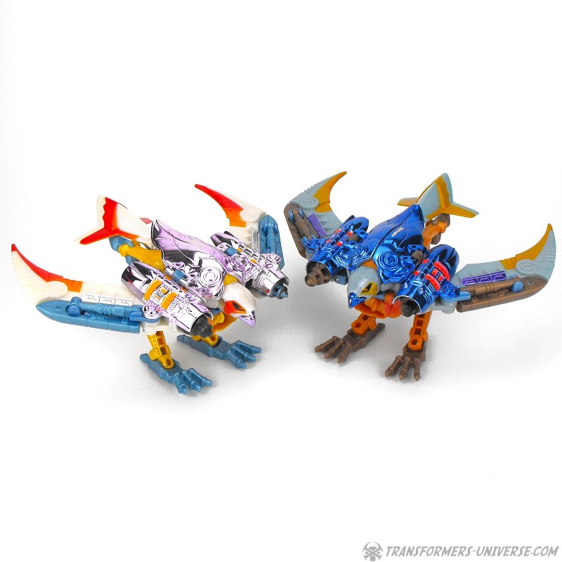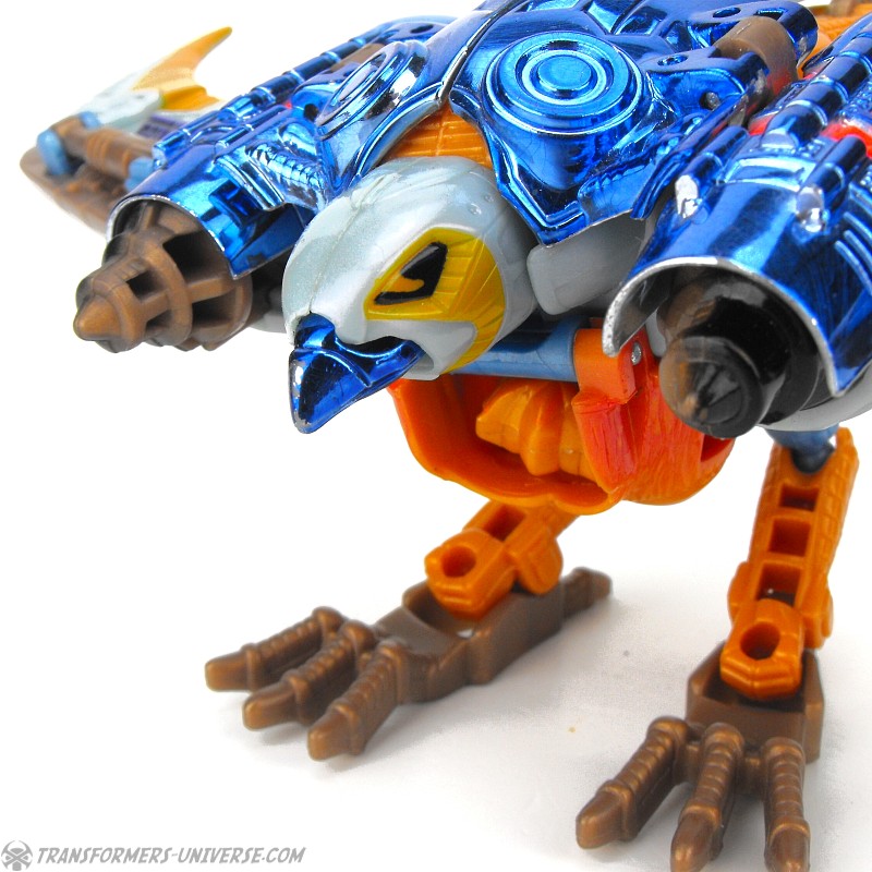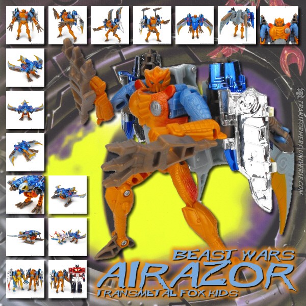 Bemerkungen: Der Charakter Airazor wurde in der Beast Wars Episode „The Spark / Der Funke“ eingeführt, aber sie gehörte nicht zu den Maximals, die von der Quantenwelle in einen Transmetal verwandelt wurden. Ihre Transmetal Version erschien lediglich in dem 3H Productions Comic „Primeval Dawn“ und diese Serie wurde eingestellt, bevor wir ihr finales Schicksal erfahren konnten. Die Figur wurde allerdings für Armada wiederverwendet, hier sahen wir Airazor in den Armada Dreamwave Comics, wo sie zu einem von Unicrons Vier Reitern wurde.