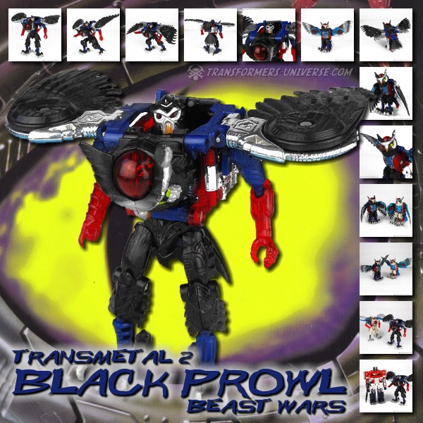 Prowl strives to find logic and reason in everything. A listener, not a talker. Has most sophisticated logic center of the Maximals. Able to analyze and advise on complex combat situations almost instantaneously. Fires highly corrosive acid pellets. Cybernetic eye and frontal lobe interact with wing mounted ion orbs, supplying limited telekinetic power. Afflicted with ironic, dry sense of humor. Believes himself to have been a great military strategist in a former life.