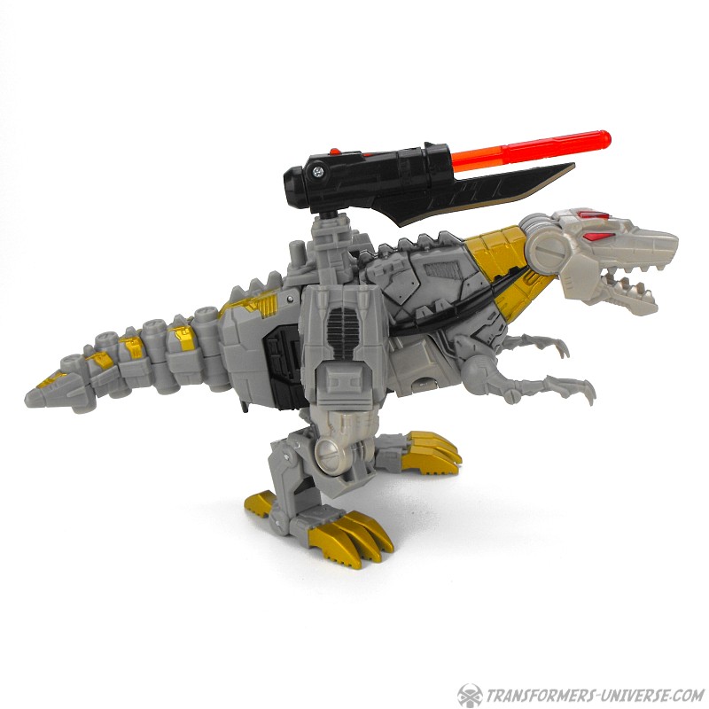 It is interesting to note that this robot is built differently than the original, even though they have the same alternate mode, which you'd expect doesn't leave that much room for variation. His feet are the head of the T-Rex, which originally just folded onto his back. His tail becomes a weapon, where it originally divided and hung off his legs. A remarkable new take on Grimlock. Either way, though, he was and is a very good robot.