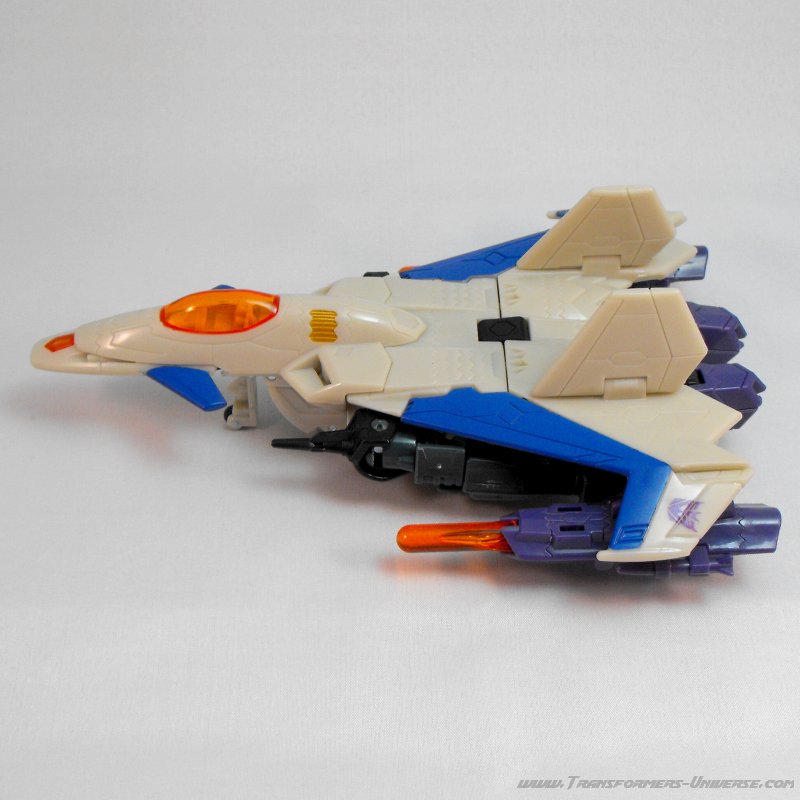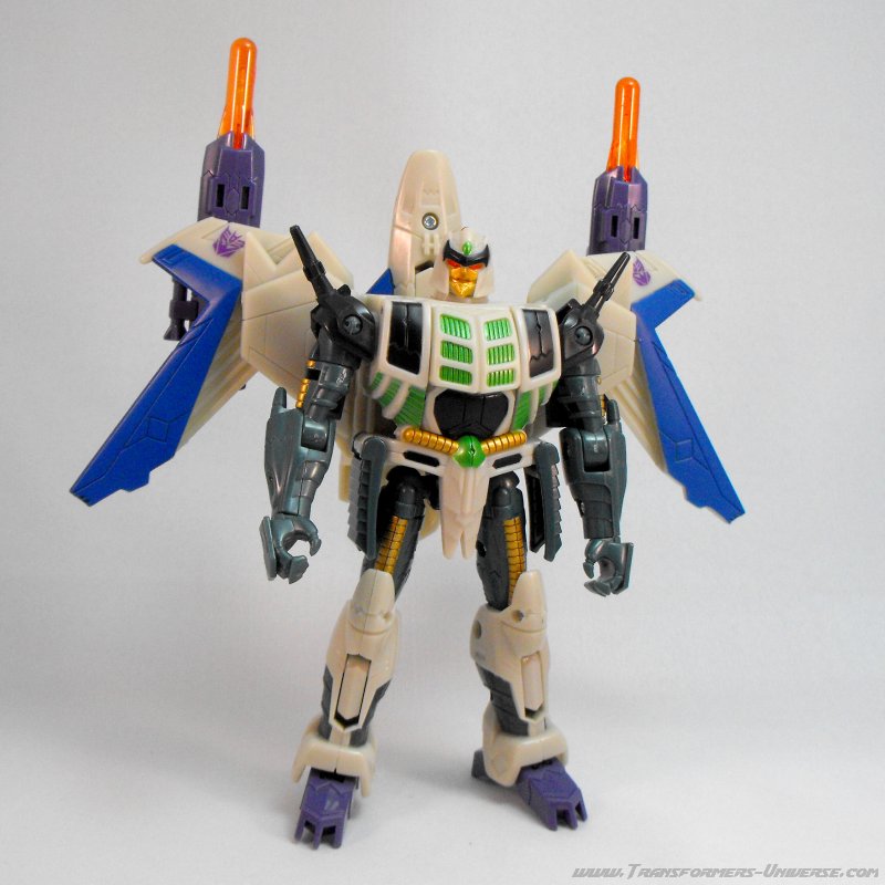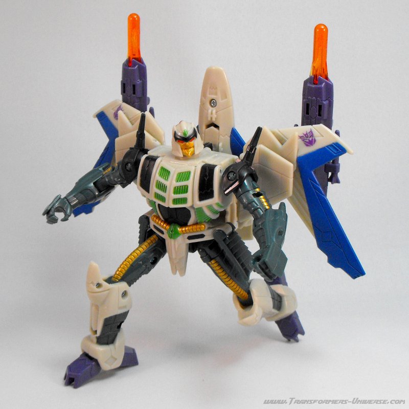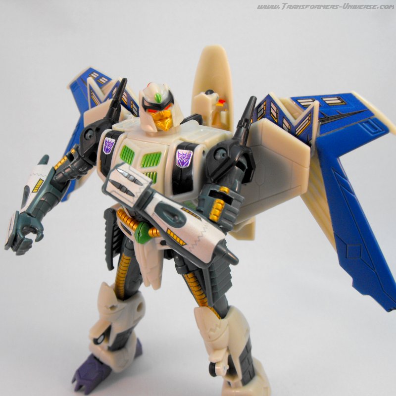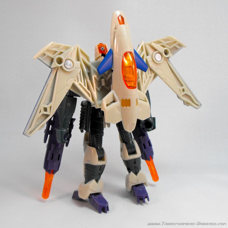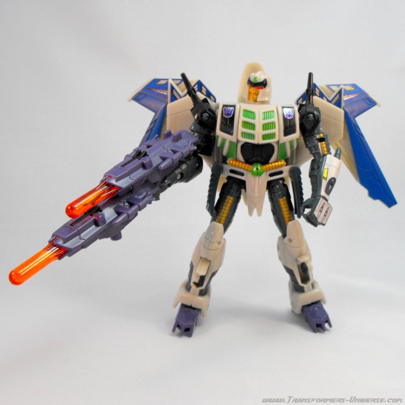 That’s not to say the robot mode is all-bad, far from it. It looks cool, is very posable except for the above-mentioned restriction, and nicely armed with two missile launchers the figure can either hold in its hands (once again no fists-with-holes but rather actual hands) or mount on its wings. It’s not nearly as good as it could have been, though, so we do need to deduct some points here.
