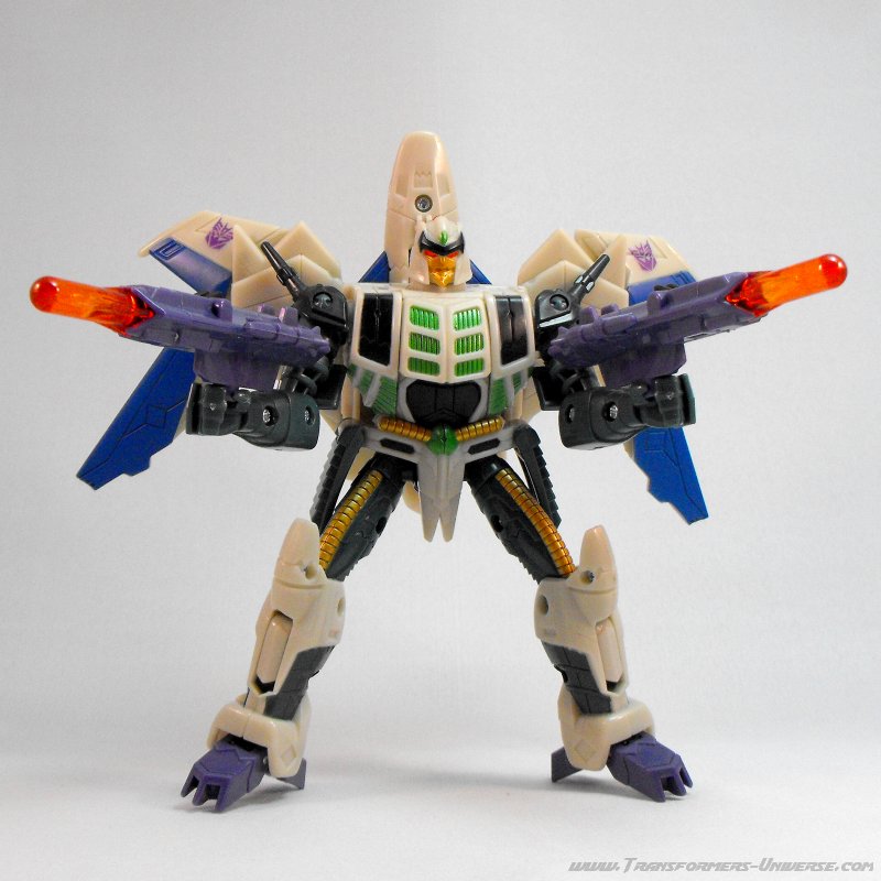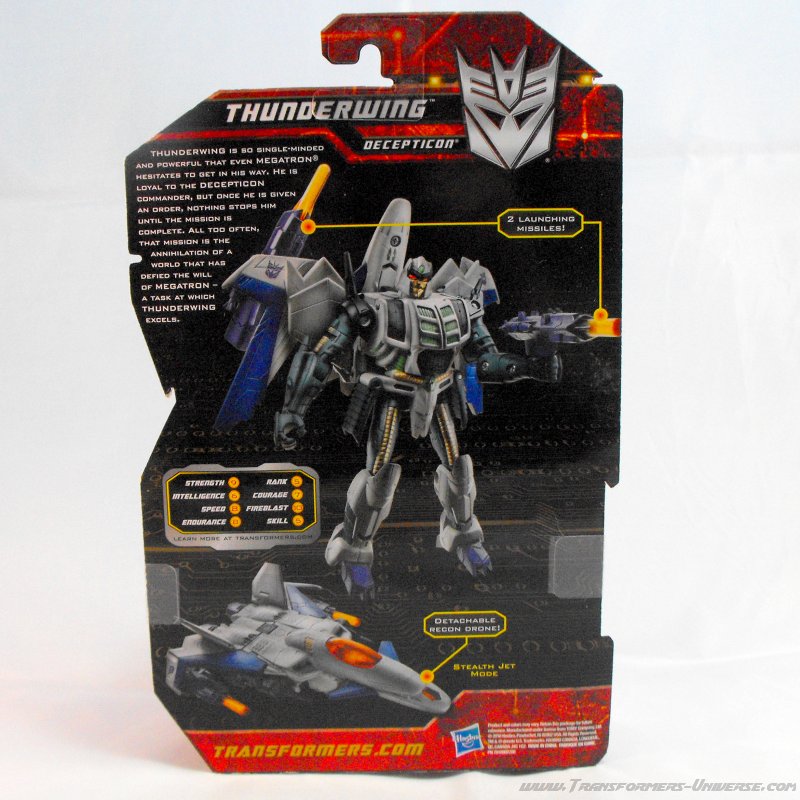 Thunderwing is so single-minded and powerful that even Megatron hesitates to get in his way. He is loyal to the Decepticon commander, but once he is given an order, nothing stops him until the mission is complete. All too often, that mission is the annihilation of a world that has defied the will of Megatron - a task at which Thunderwing excels.