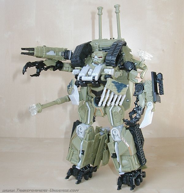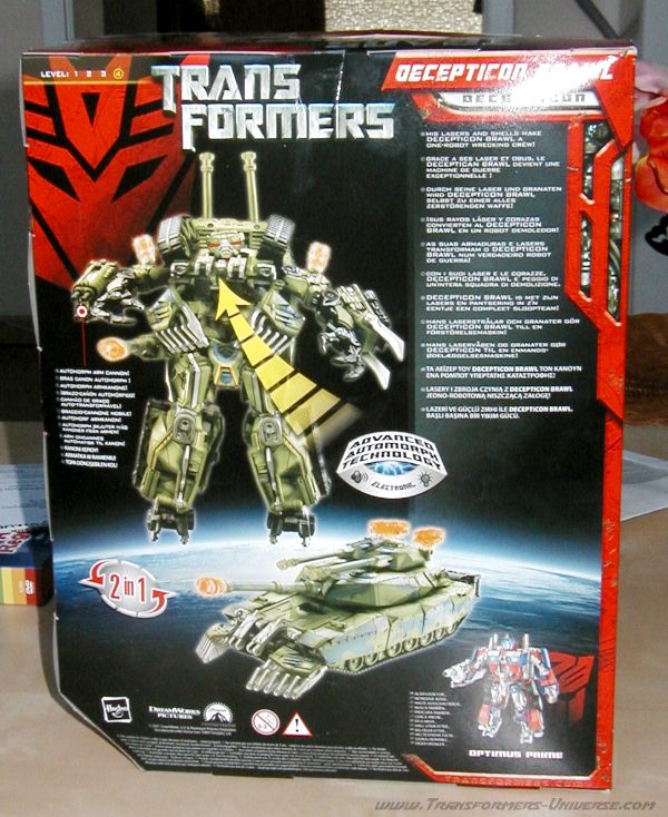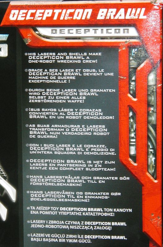 Prelude: Brawl, who was mistakenly called Devastator in the movie, is egotism personified. He wants to slaughter everyone, no matter if they're friend or foe; both are welcome to enter his weapons range. His heavily armed, bulky exterior gives Brawl a truly frightening air, which is mirrored in the eyes of the soldiers he faced in the movie. Even the Autobots, outnumbering him four(!) to one, needed two tries and lots of shots to take this monster down.