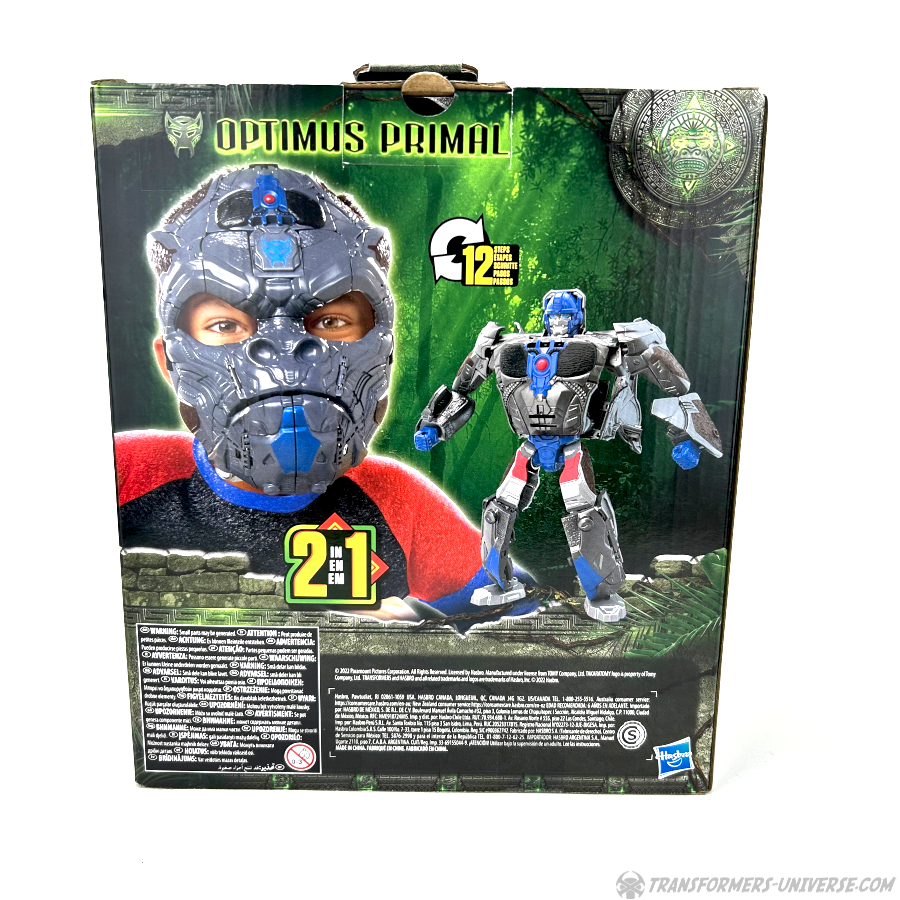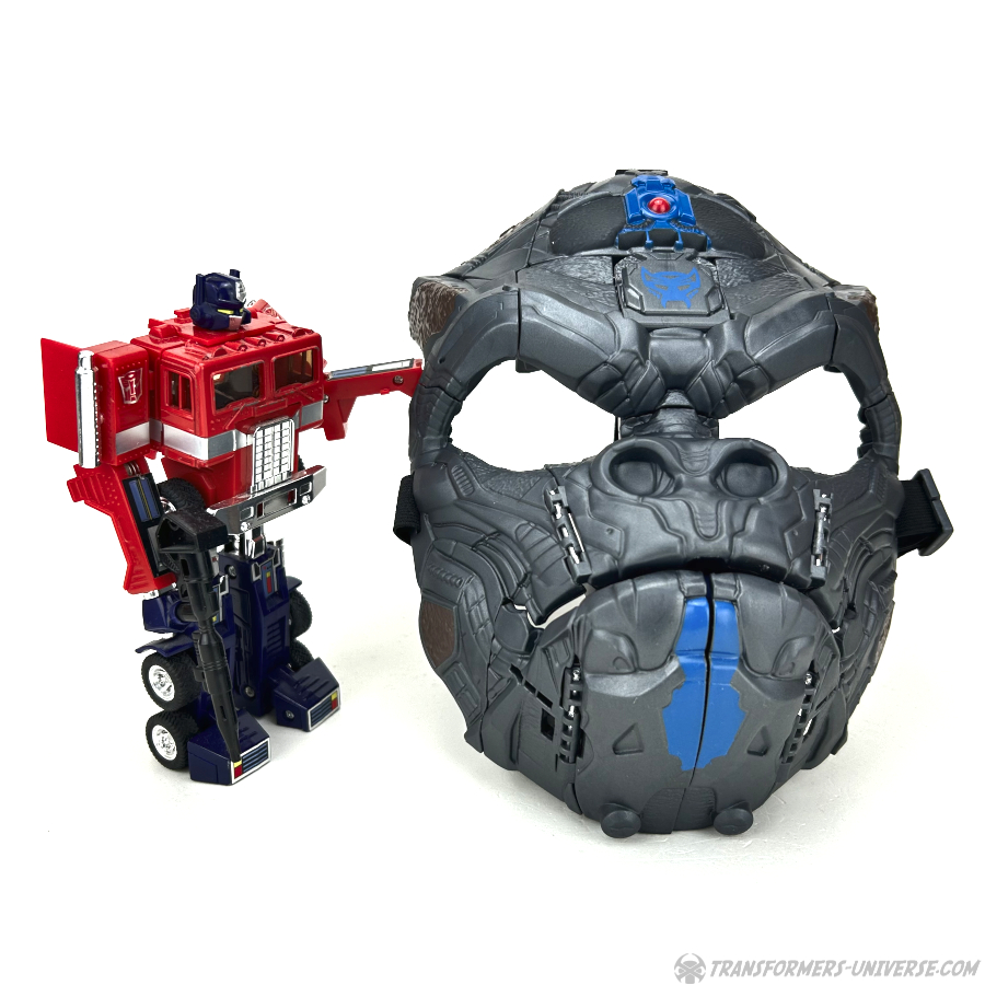 Remarks: Optimus Primal’s first foray onto the silver screen as part of the Rise of the Beasts movie garnered him a ton of action figures and merchandise, a transforming mask among them. This is also my first foray into transforming masks, as I’ve seen quite a few of them before, but I always considered them too costly for what’s essentially just a fun gimmick. Thankfully this one here was greatly reduced in price, so I finally indulged myself and got my first transforming mask.