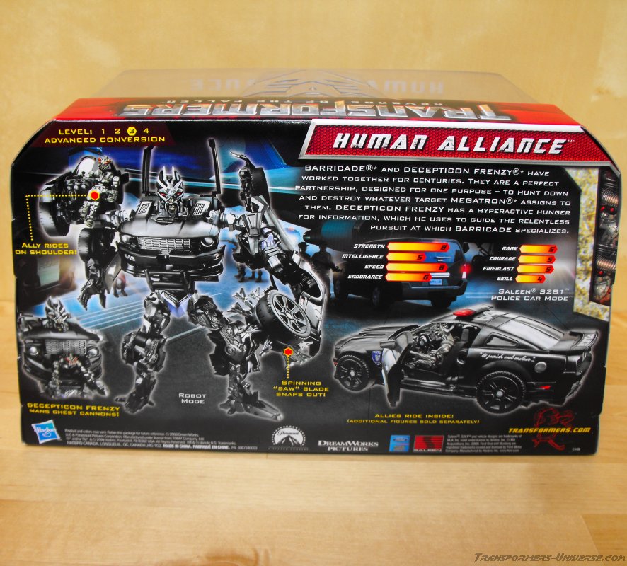 So what can I say about this toy? Not much, except that it's easily the best Barricade figure yet. There are some minor things that could have been improved, such as the leg-hip attachment, but overall I'm very much satisfied. Barricade is the only Human Alliance figure I've bought so far (I got two others as presents) and I don't regret it for a second. So in my mind, if you're going to buy just one Human Alliance figure for some reason, I recommend it be Barricade.