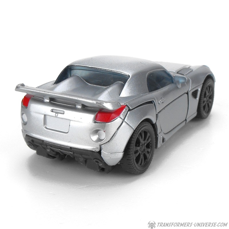 Alternate Mode: Jazz still transforms into a silver Pontiac Solstice sportscar, so no changes here. The car looks very sleek and there are no visible robot bits. Of course you can see numerous seams along the car chassis due to the bright color, but that isn’t really avoidable. Not mentioned in the instructions: you can store the shield/gun in vehicle mode by slotting it into the rear spoiler. Kind of ruins the disguise factor, but it’s possible. So bottom line: a very nice car mode, no complaints at all.