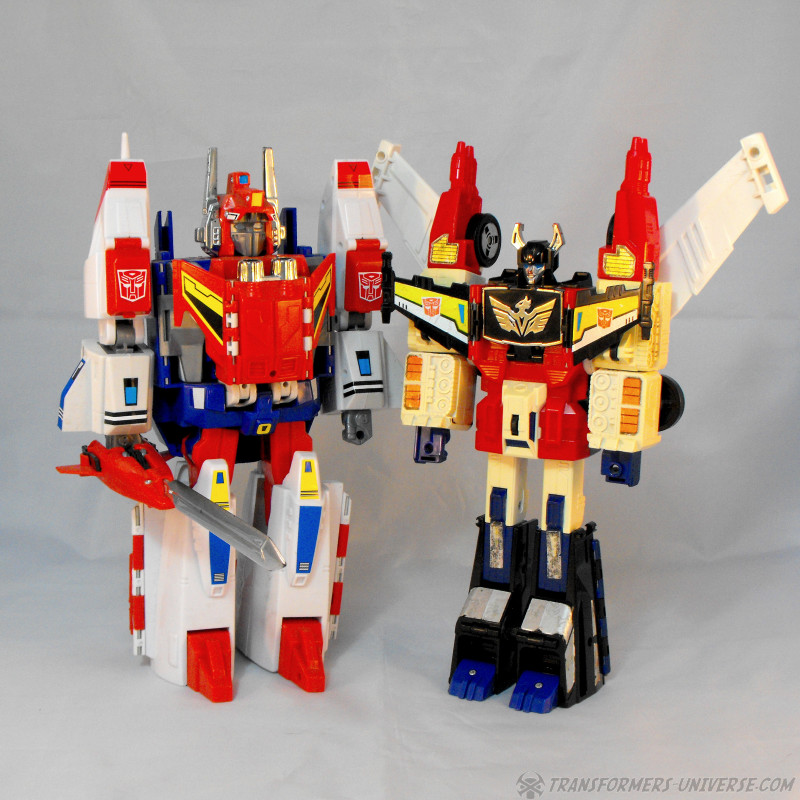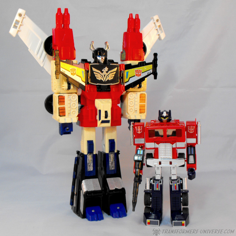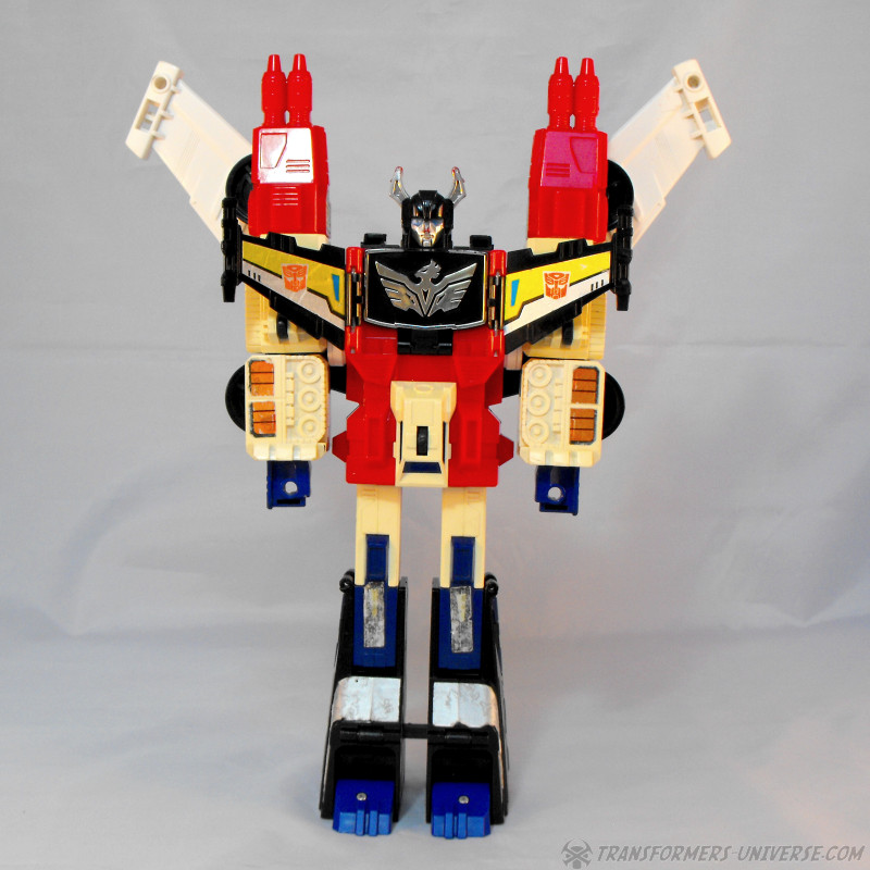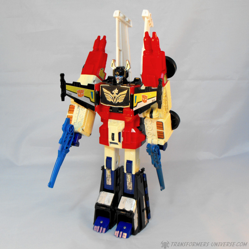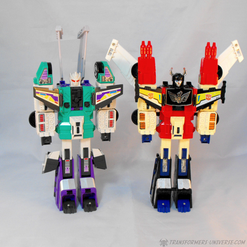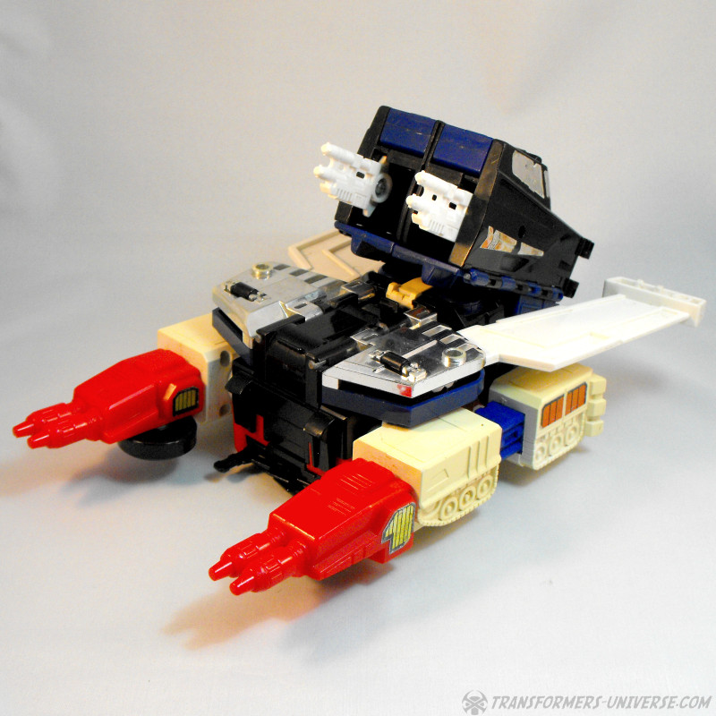 The Victory series contained quite a few extensively retooled figures from earlier in Generation 1. Personally I like Greatshot better than Sixshot, mostly because of the colors and the (to me) superior head and shoulder pieces. Objectively the two really don’t differ that much and Sixshot is certainly much easier to get. I wouldn’t have coughed up the money necessary for a pristine MISB Greatshot (380 dollars was the cheapest I saw on eBay), but I got him as part of a lot and I’m happy with that. Recommended to fans of Japanese exclusive figures and rarities.