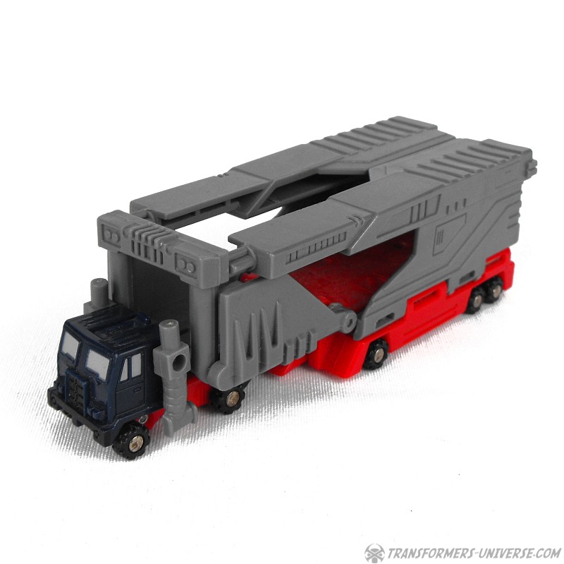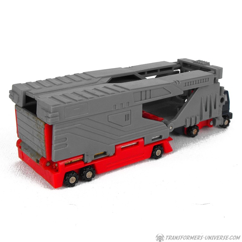 Vehicle Mode: In vehicle mode Overload reminds me a bit of Ultra Magnus, a truck with an open car carrier trailer. This might actually be Overload's best mode, seeing as it looks pretty much like what it's supposed to be. But that's it.