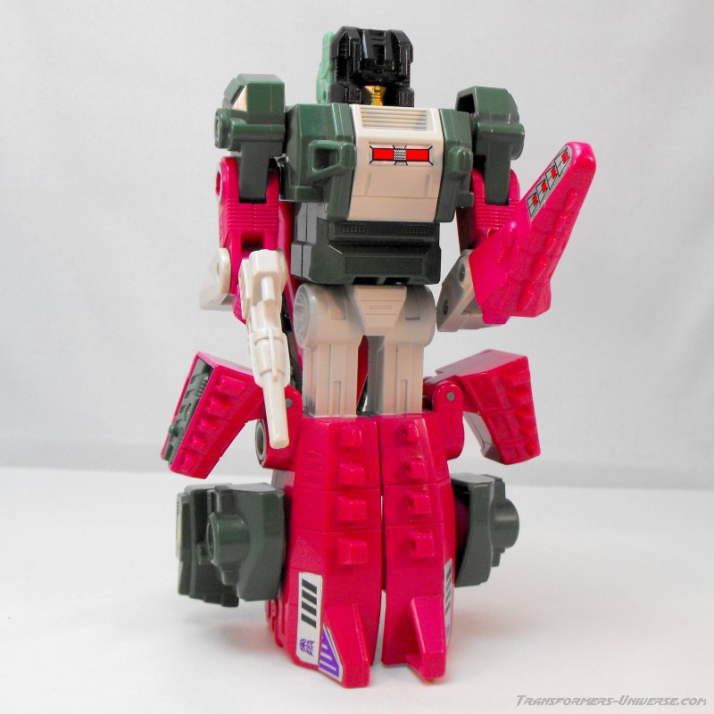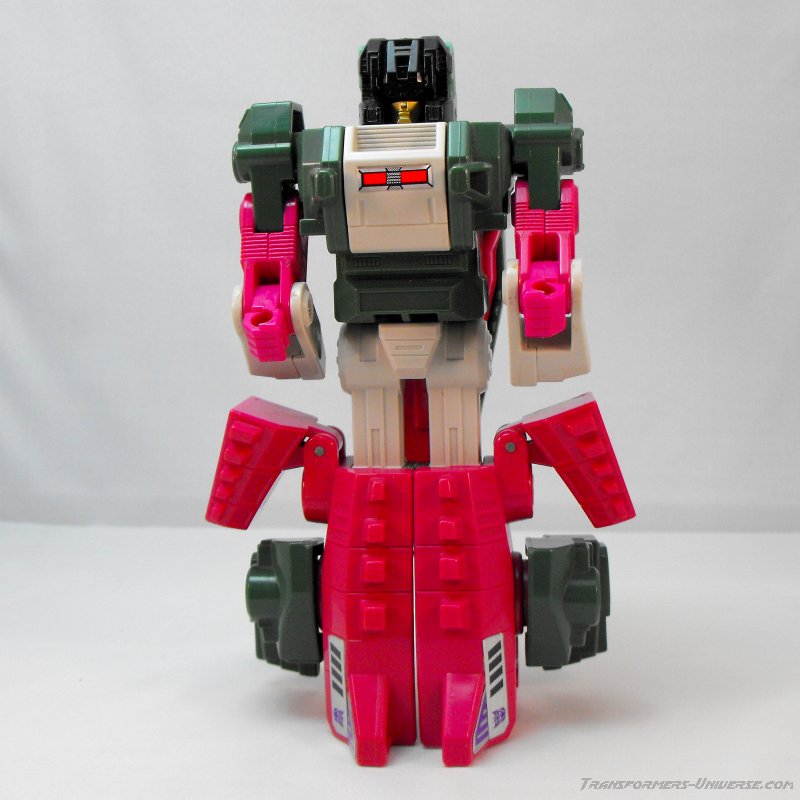 Like all Headmasters Skullcruncher shows his stats behind his chest plate when his head is plugged in. According to them he's very strong, pretty intelligent, but very slow. Not sure where the intelligent comes in (certainly not in his tech spec or any of his in-media appearances). So in the end we have a rather typical 1987 G1 robot with no flaws worth mentioning, but nothing particularly outstanding, either. A good, but unspectacular robot mode.