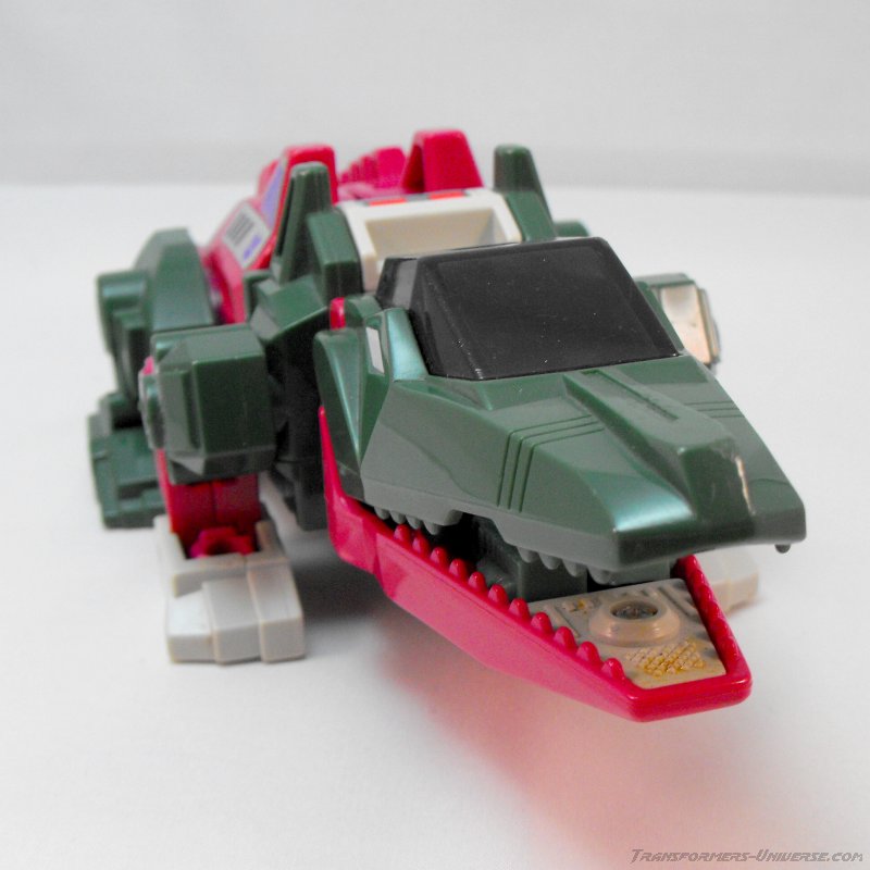 Has a habit of grinding his teeth before he strikes -- annoying his friends and tipping off his enemies. Binary-bonded to Grax, a Nebulan industrialist who's joined up to eliminate his competition. In robot Mode, uses softening ray run -- gives metal the consistency of rubber, making his enemies easier to chew when he reverts to alligator mode.
