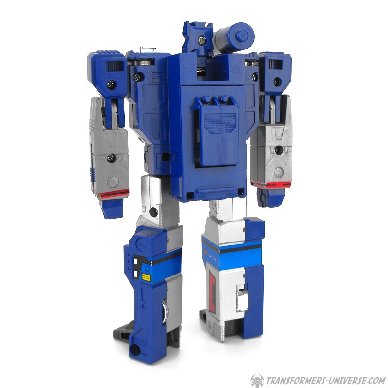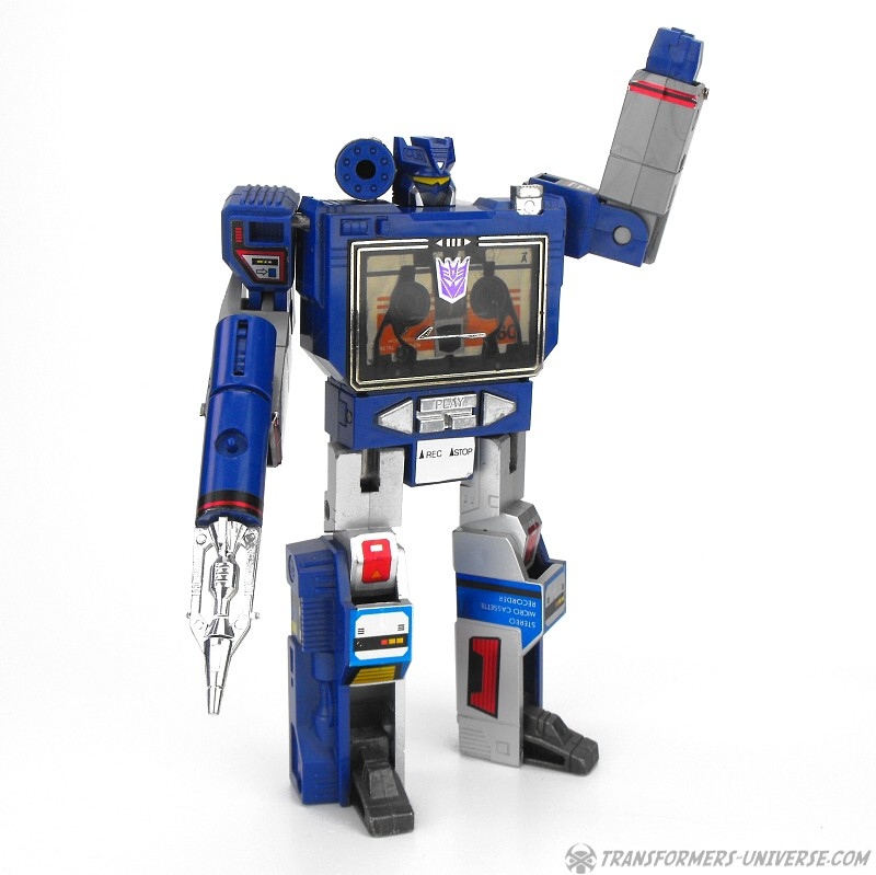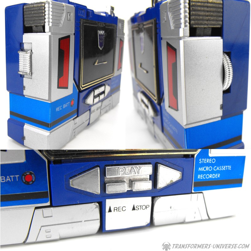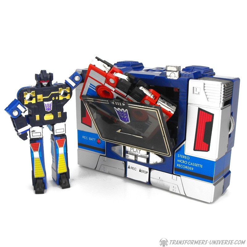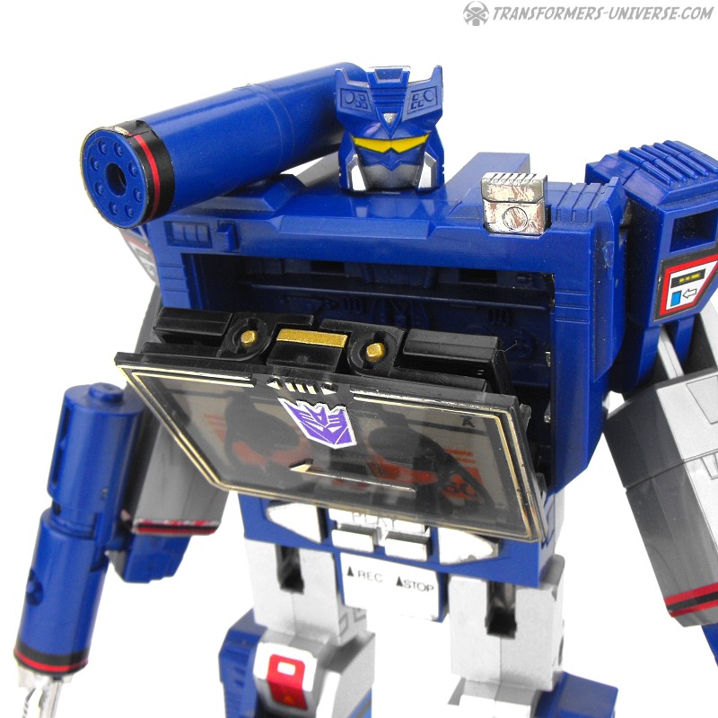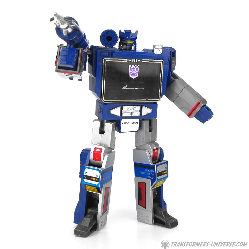 Remarks: Soundwave was the coolest G1 character bar none. His modulated voice sent chills down my spine back in those days and of all the Transformers he had the coolest powers. He could read thoughts, shrink down to the size of a real Walkman, house a huge force of Cassette Decepticons inside his chest, and produce Energon cubes. No Transformers collection is complete without Soundwave. Bottom line.