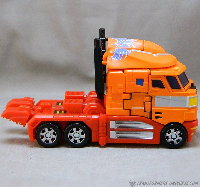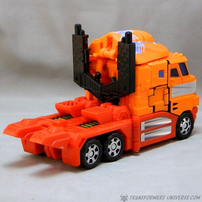 Remarks: Ginrai, who was an exclusive at the 2014 Botcon convention, is yet another version of the popular Classics Optimus Prime mold (like Classics Ultra Magnus, Shattered Glass Optimus Prime, and quite a few others). His orange paintjob and name are homages to Fire Guts Ginrai from Takara's G1 line and the figure has been slightly retooled, so that it can hold its truck canopy as a shield. While I personally never had this version of the figure, I believe every serious Transformers collector should own at least one version of this excellent mold.