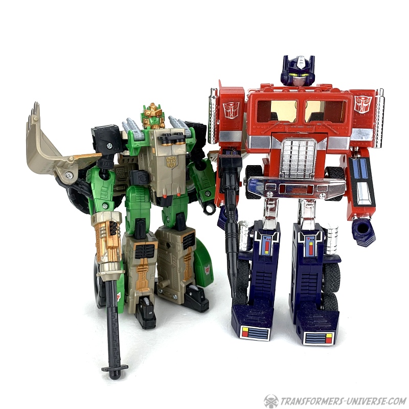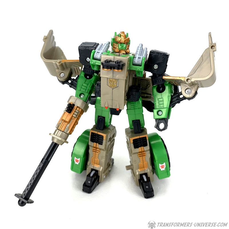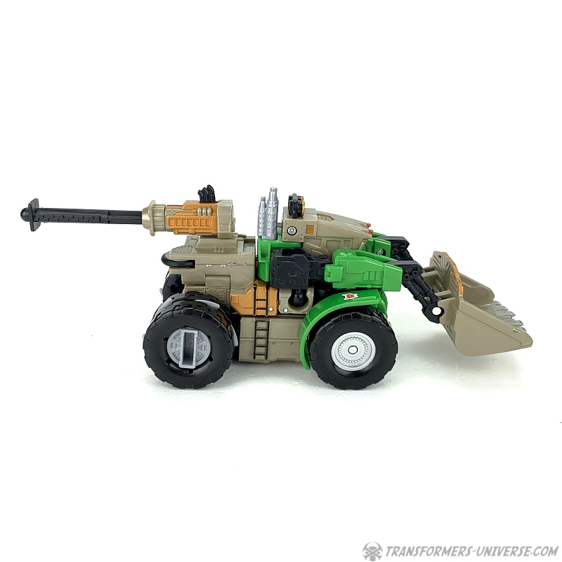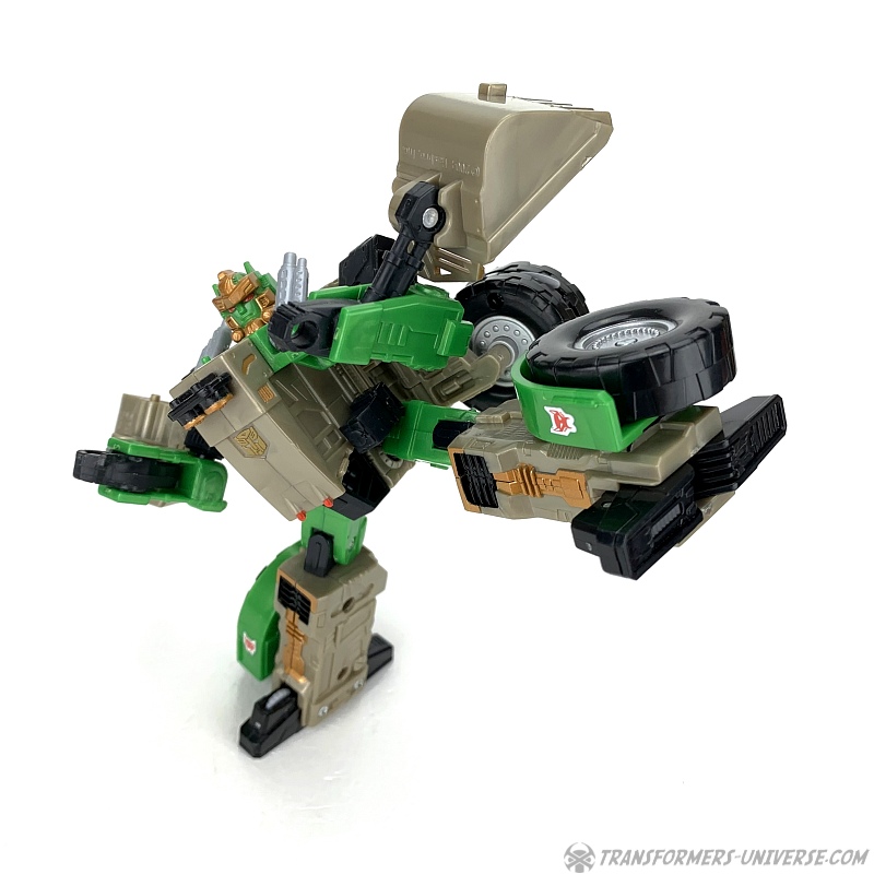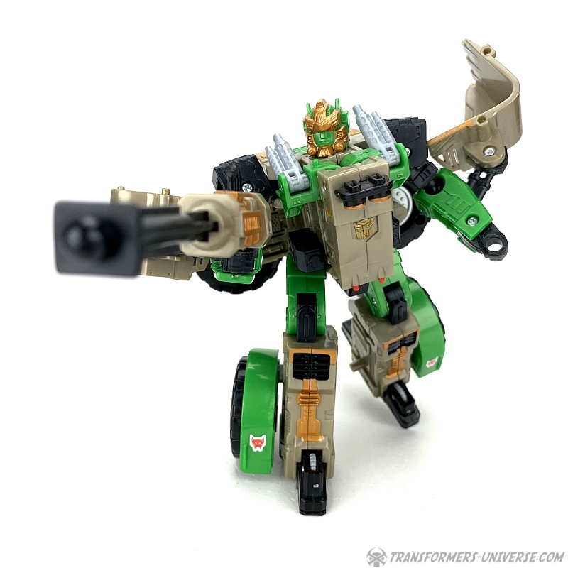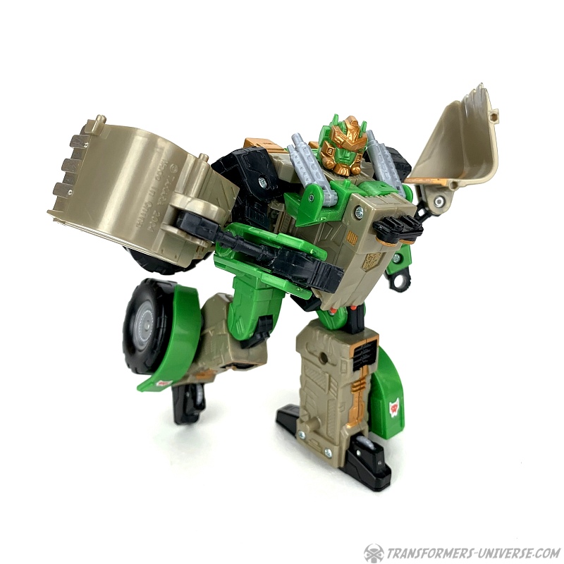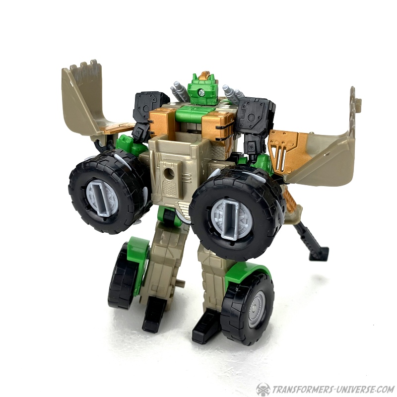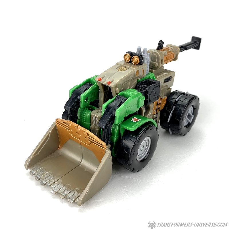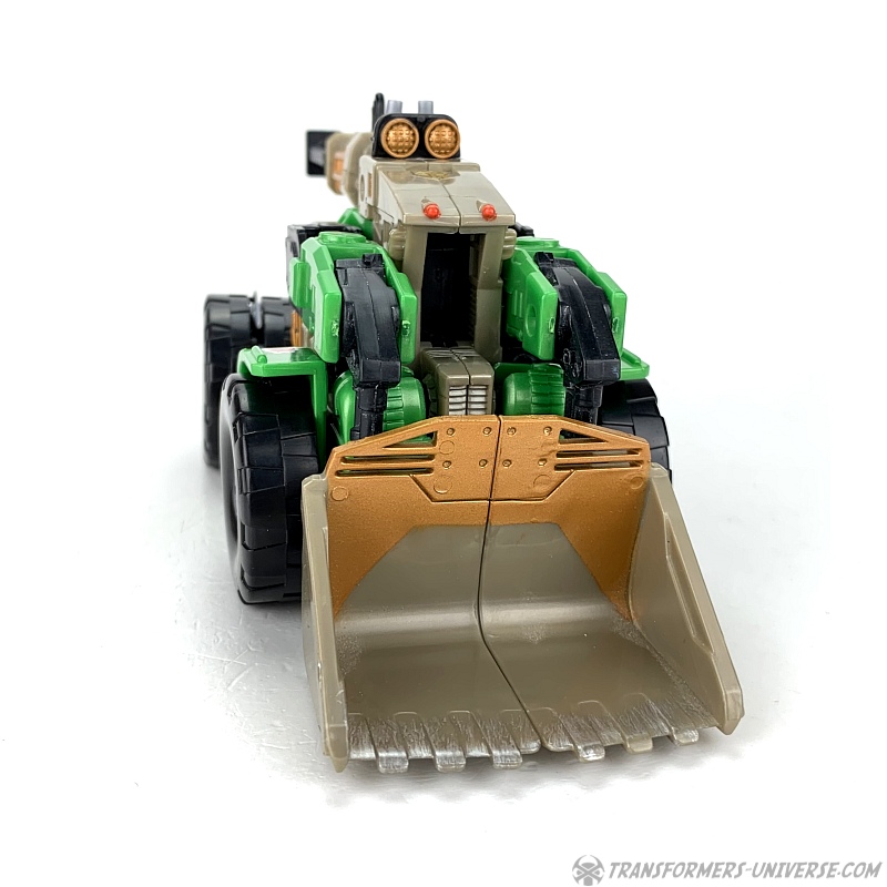 The transformation is rather simple and the vehicle itself is solid and does what it’s supposed to. The shovel can be raised up and lowered, the wheels turn, and in theory you can activate the Cyberkey gimmick here, too, if you want. So bottom line: definitely not the most exciting alternate mode of all time, but solid and workable.