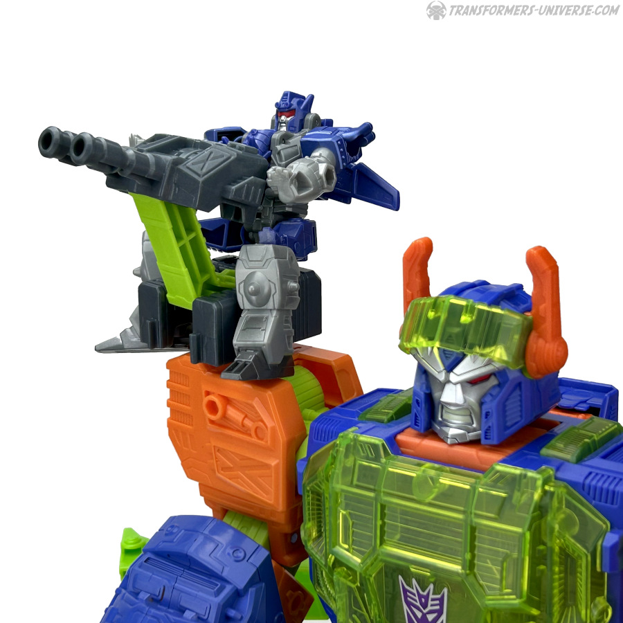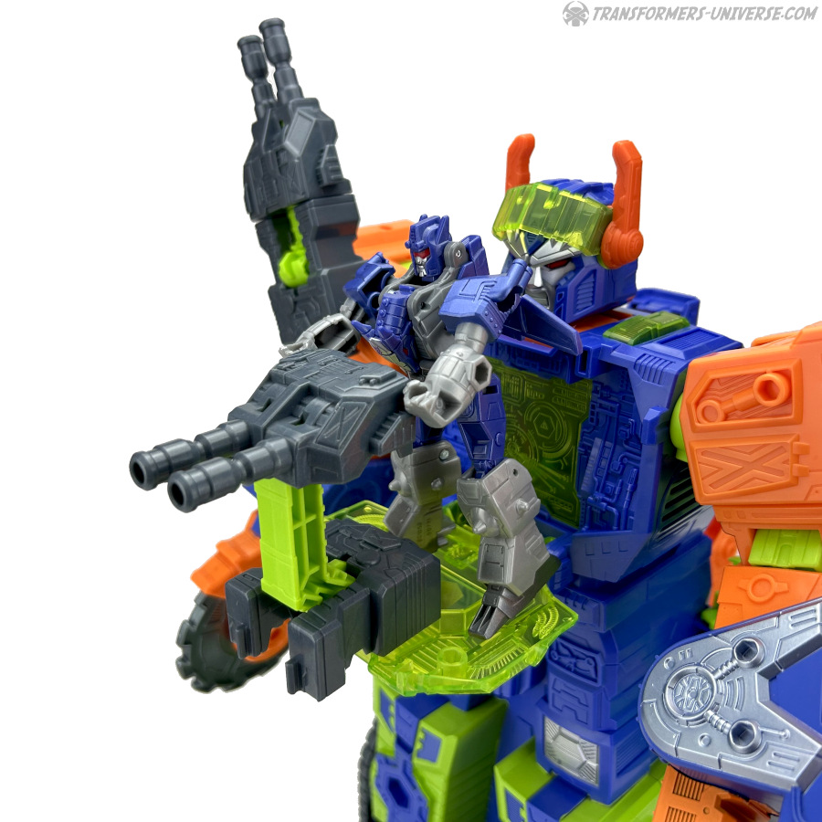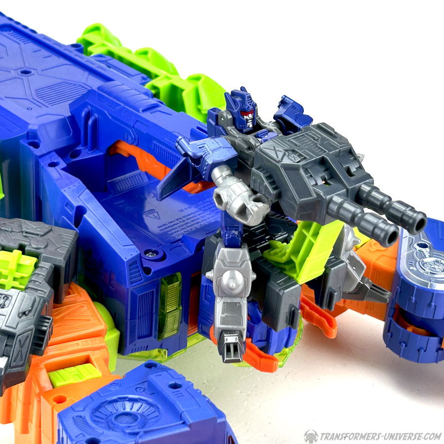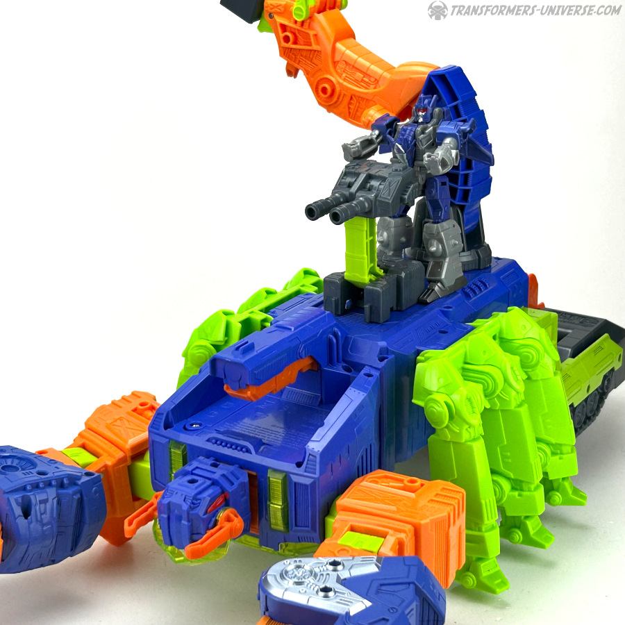 Now we come to the fun interactive part. Both of Scorp’s gun turrets are made to detach and interact with smaller figures. They can attach them to their backs, arms or on top of their vehicle modes, or you can attach them to Scorponok’s chest (which opens up), shoulders, or legs and have the smaller figures serve as gunners.