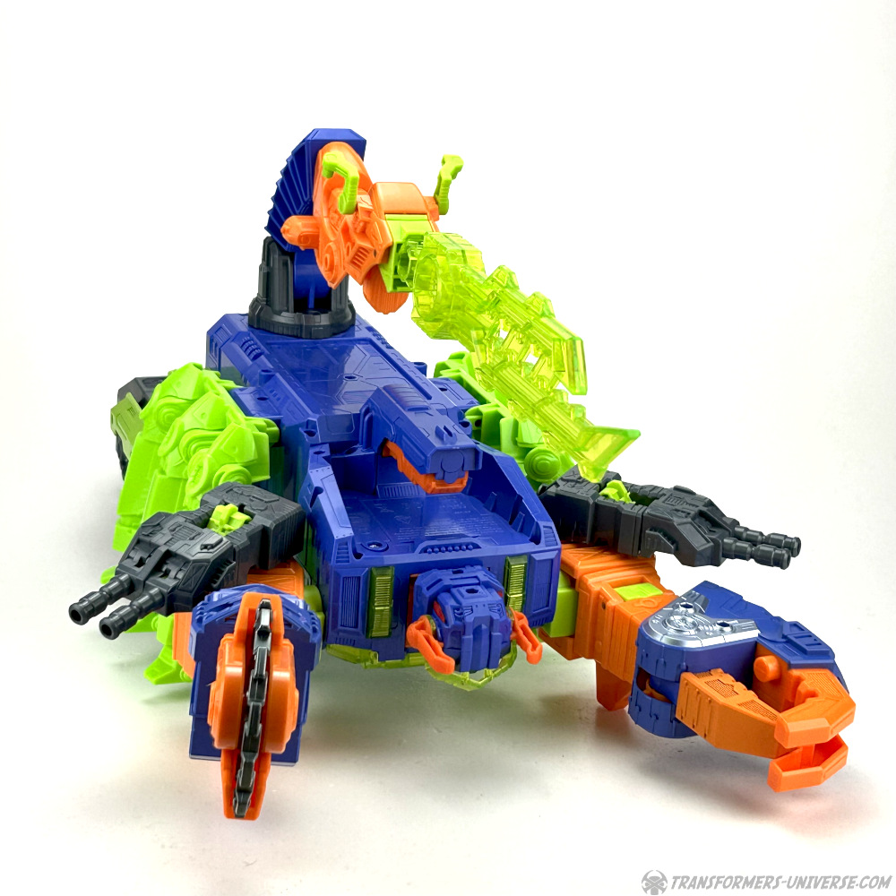 Cyberworld Scorponok is, in fact, rather similar to G1 Scorponok. Not only are the two figures nearly identical in size, they also resemble each other in general style, range of articulation, and have a similar transformation into their scorpion mode, too. Sure, Cyberworld Scorp is not a Headmaster, but still, it’s kind of amusing that two toys that are nearly 40 years apart could be so similar. Though the head is more Energon Scorponok than G1, to be honest.