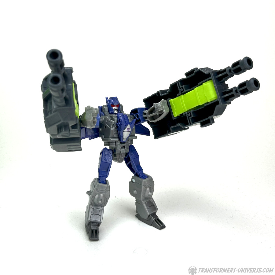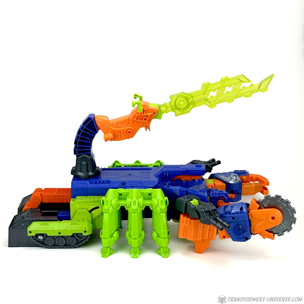 Alternate Mode: Cyberworld Scorponok might well be the biggest 1-Step Changer ever made, because his transformation is really just one step. Grab the handle on his back, press down on the grip, and tip him forward until he lies on his stomach. You’re done. Okay, you need to raise his arms above his head, but that’s really it now. He is now a scorpion, more or less. But let’s be honest, the original Scorponok’s transformation was barely any more complicated. Cyberworld Scorponok skips the city mode, though.