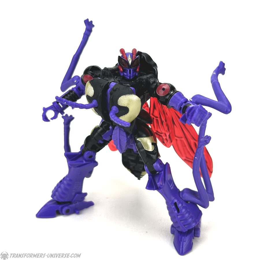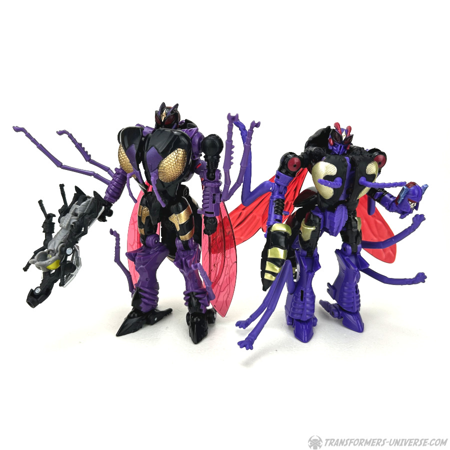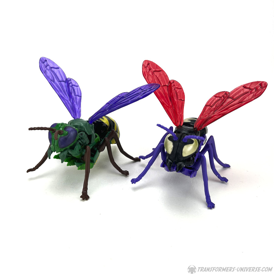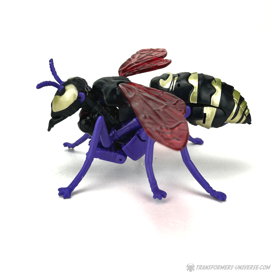 Skywasp is a straight-up repaint, but comes with an additional head you can switch out for the standard Waspinator noggin’. The head is based on the non-Mutant head of the original Beast Wars Waspinator figure (the one used for Buzzsaw), just in purple instead of green.