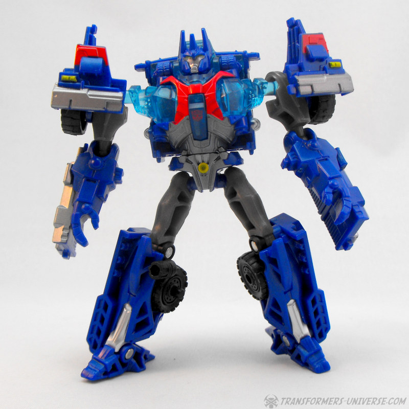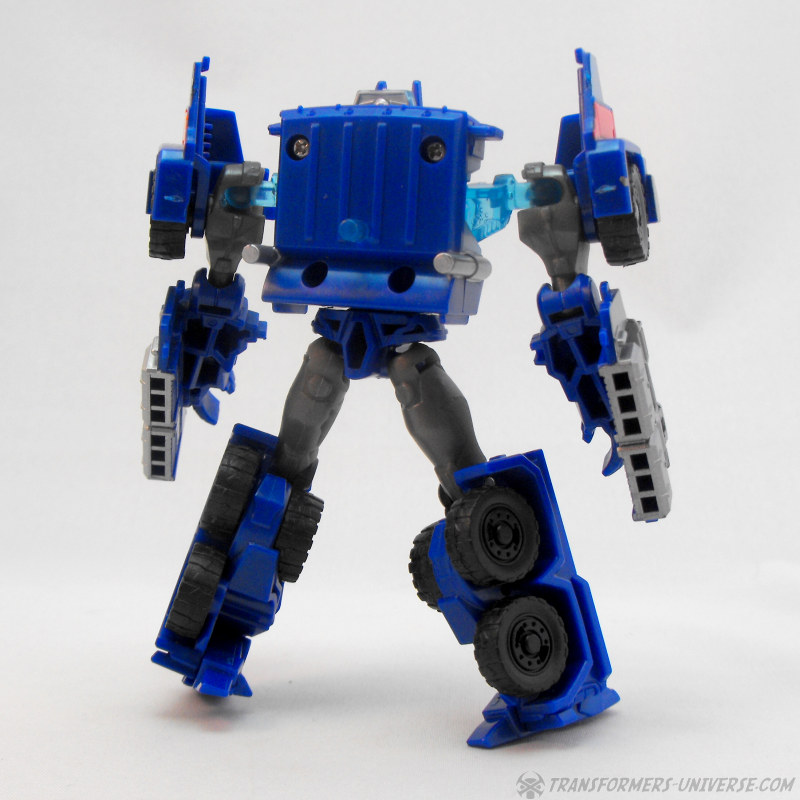 Robot Mode: Ultra Magnus appears as a nice mixture between the original G1 Ultra Magnus (mostly the head) and his more recent Animated incarnation. He’s mostly blue with some red and silver/grey highlights and looks pretty good overall. Very nicely detailed for a figure of this size class.