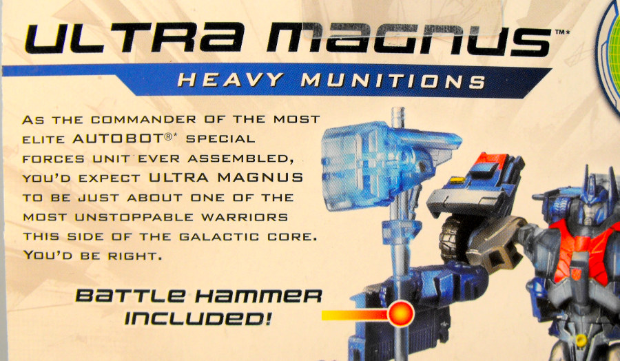 Remarks: At this point in time we haven’t seen Ultra Magnus appear in the Prime TV series. He had a role in the Exodus novel (supposedly the prequel to both the Prime TV series and the War for Cybertron computer game) as the leader of the Wreckers, which this toy’s profile mirrors (though the elite force isn’t named). Seeing as a Voyager-class toy is also planned for Magnus, one can assume he’ll appear in the TV series sooner or later.