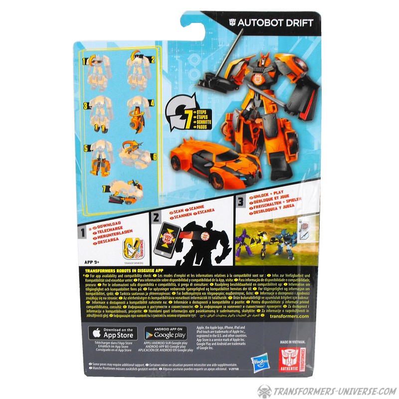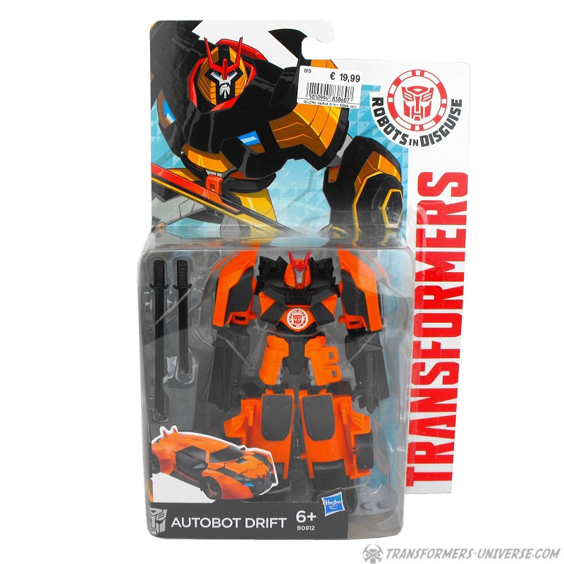 Remarks: Drift has yet to appear in the new RID cartoon as I write this review, so I have no idea what role he will play there (apart from Samurai). Hopefully he will get a bit more depth than he did in Age of Extinction, where he got none (except Samurai). As far as the toy goes, though, it might just be my favorite RID 2.0 toy yet. Sure, it’s on the small side of a Deluxe-class figure and could do with a bit more detailing, but overall I like it very much. Drift appeared in droves in German Kaufhof branches, sole representative of the Warrior-class there so far, and I snatched him up during a lunch break. Don’t regret it in the least. Recommended to everyone who isn’t completely turned off by the somewhat simplified RID 2.0 aesthetic.