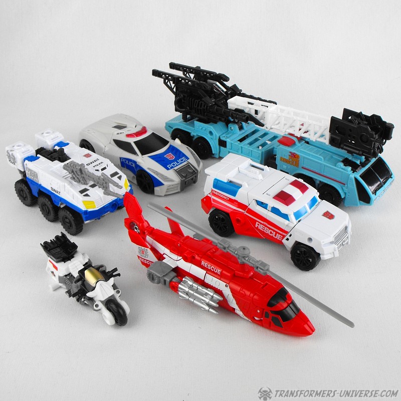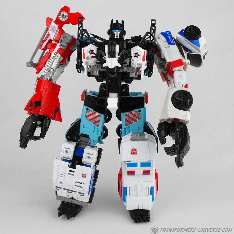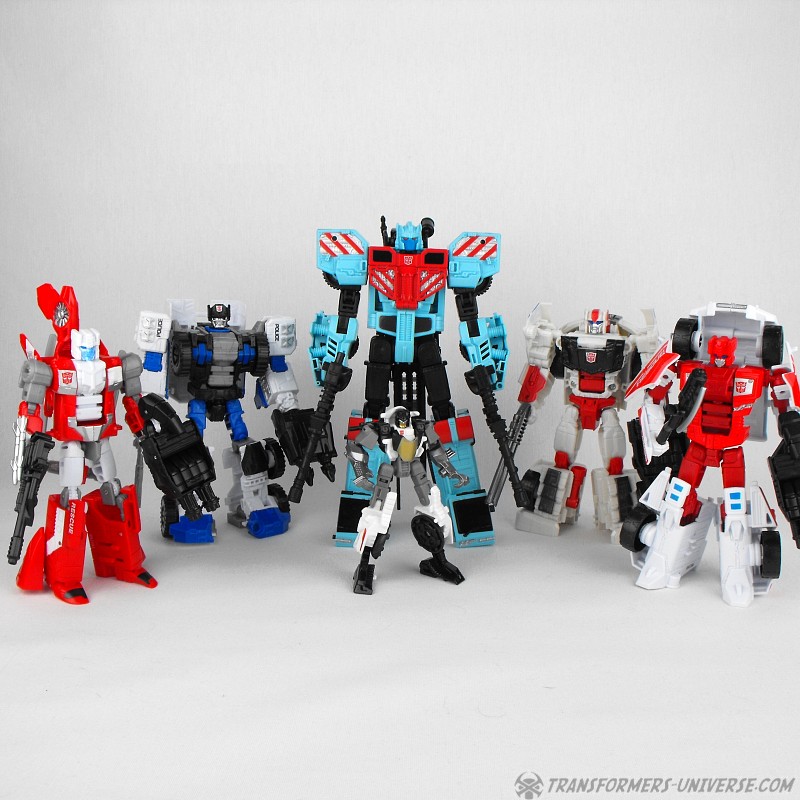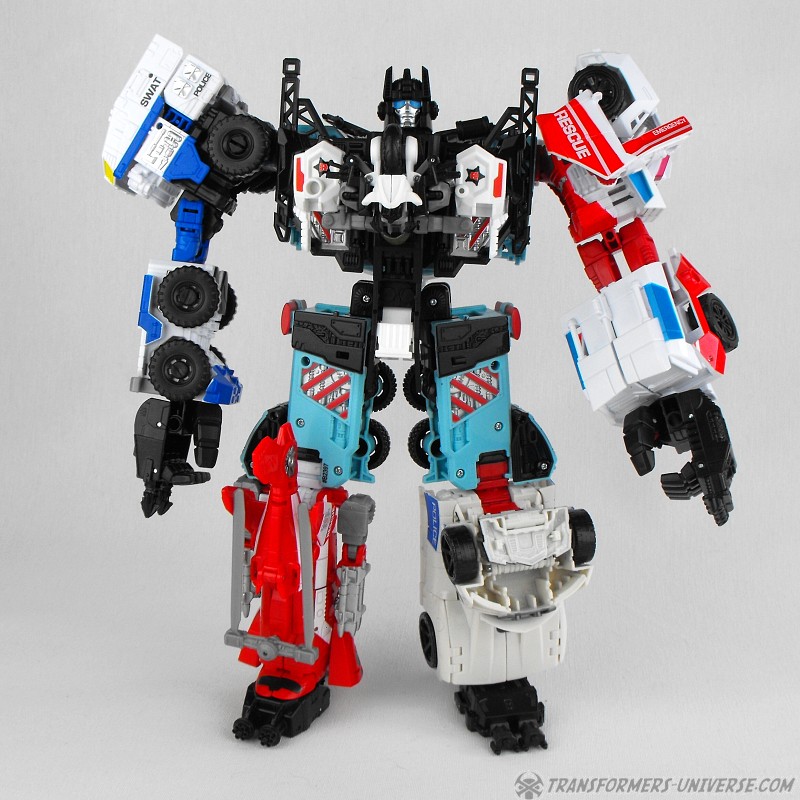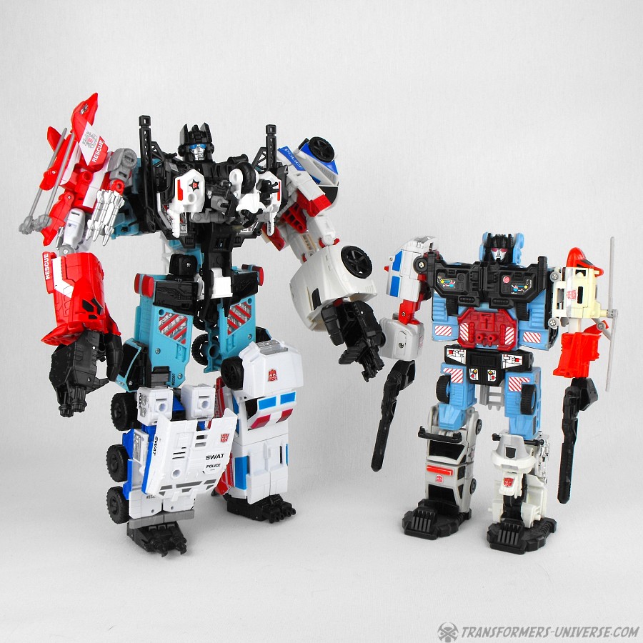 Prelude: Defensor here is the combined form of the Combiner Wars Protectobots Hot Spot, Rook, Streetwise, First Aid, Blades, and Groove, all of whom I have reviewed separately. This review here focuses only on the combined figure.