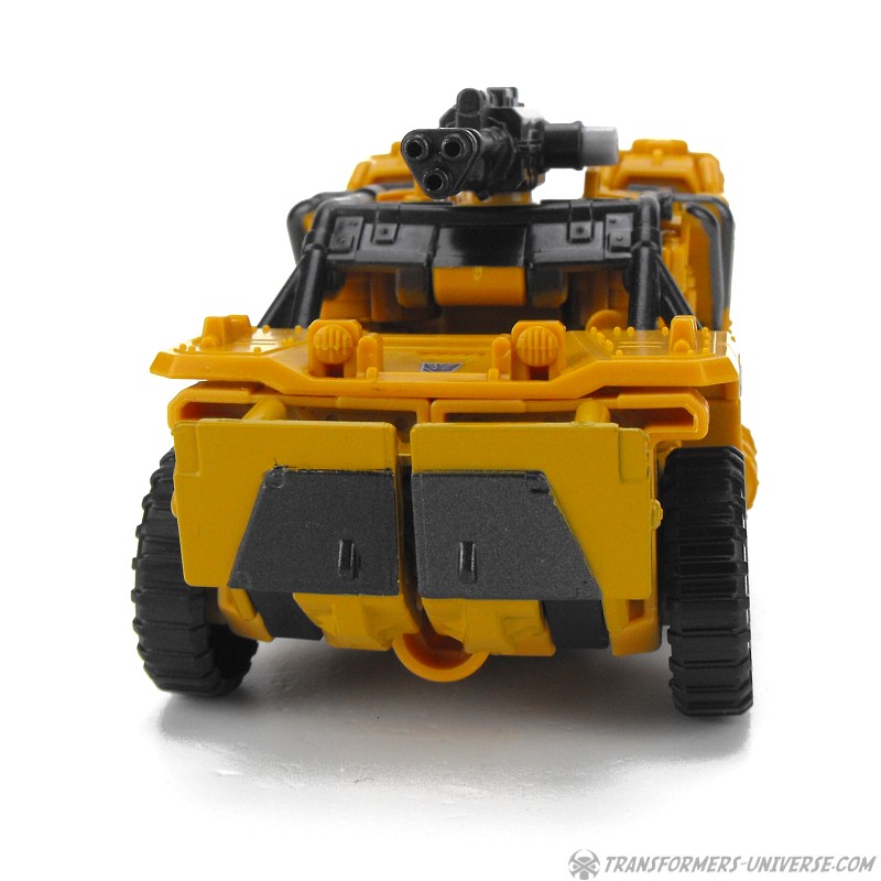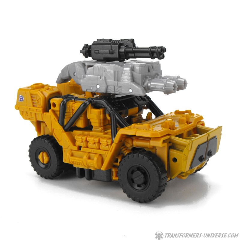Alternate Mode: Instead of the SWAT vehicle that Rook transformed into, Swindle turns into a somewhat futuristic looking military jeep (possibly a hummer). The vehicle can’t quite disguise the robot arms that form the back part, but overall it does a pretty decent job. The minigun can be mounted on top and you can also mount both weapons stacked, too, but that doesn’t look that great in my mind.