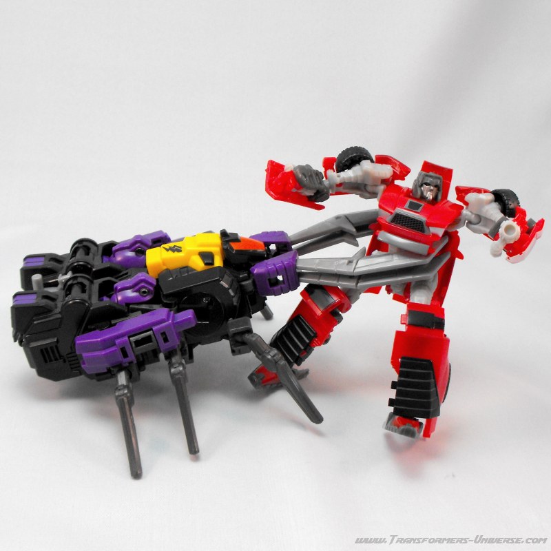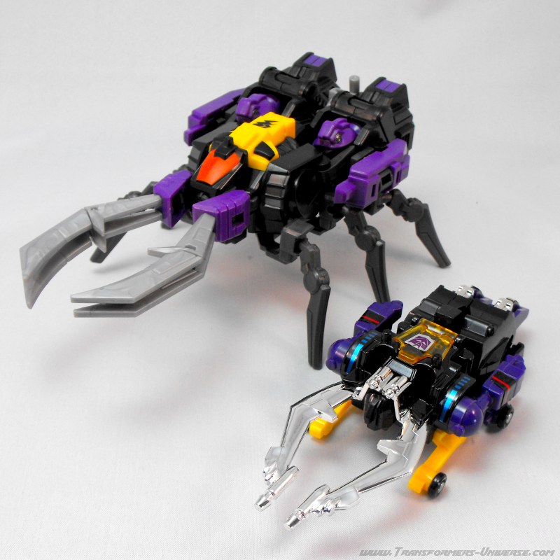 Thundershred’s pincers are posable and can grab other Transformers without problem. His six legs are on balljoints giving him some limited posability here, too. All in all this mode does what it’s supposed to, portraying a menacing-looking mechanical beetle. So thumbs up.