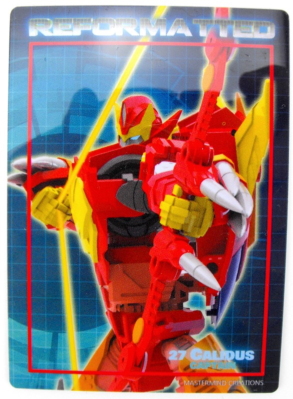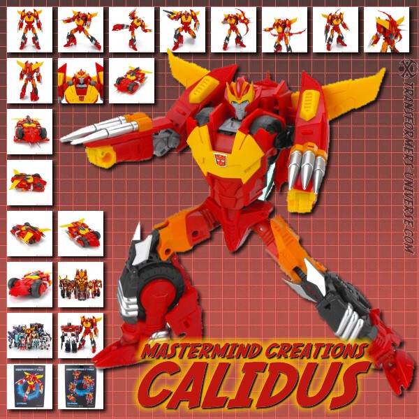 Prelude: This figure here is not a product released by Hasbro or Takara-Tomy and thus not officially a Transformer. It’s from third party company Mastermind Creations and it is, of course, meant to be Hot Rod / Rodimus, more specifically the version of Rodimus starring in IDW’s More Than Meets the Eye / Lost Light comic book series, but for legal reasons he can’t be called by that name. Instead he is called Calidus, which is Latin for hot, fiery, passionate (or possibly “still fresh”).