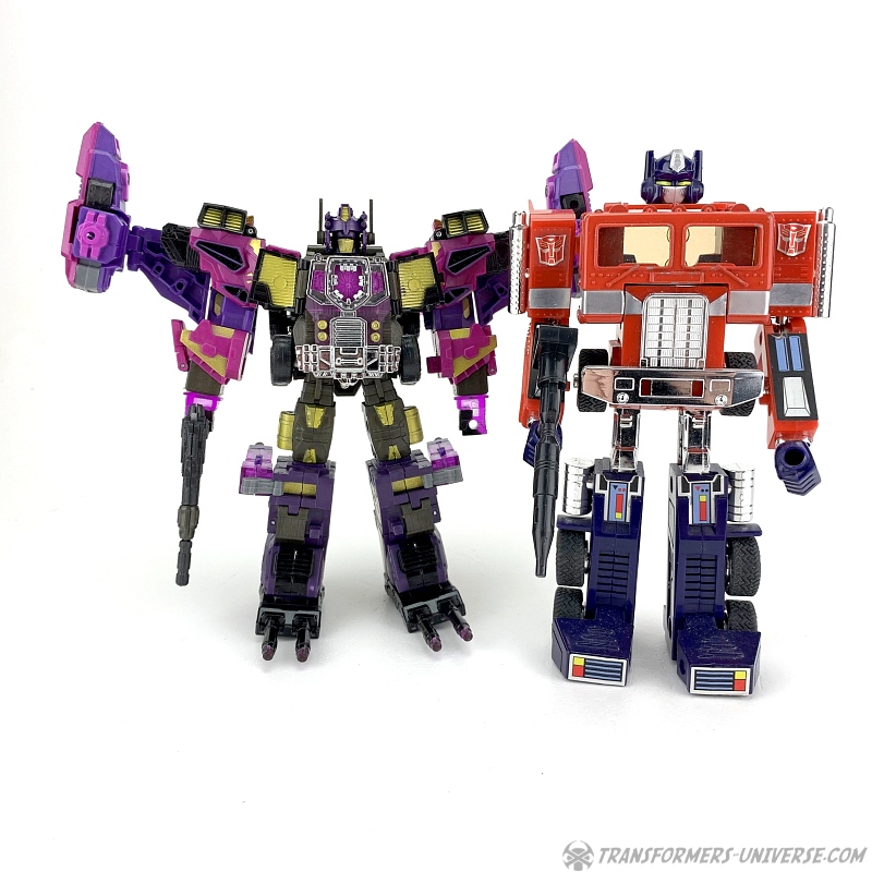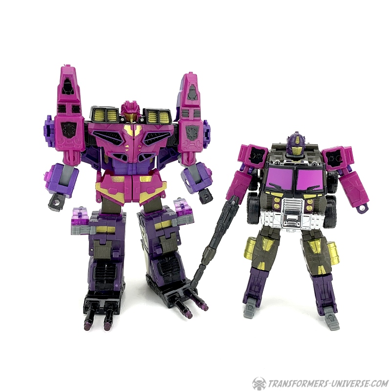 Remarks: This toy here, a loan from my buddy Fuchs Geronimo, took me by surprise, I must admit. Never heard of it before, never saw it anywhere. The company(?) that made it, Astron, has apparently never produced anything else that I could find. The toy itself is really just a scaled-down knock-off, but there is some (minimal) new tooling and an original paintjob, too. It’s half Shattered Glass, half Nemesis, and the result is kind of its own thing in a weird way. And in case you were wondering, to the best of my knowledge there has never been a Non-Nemesis Edition of this toy, either.