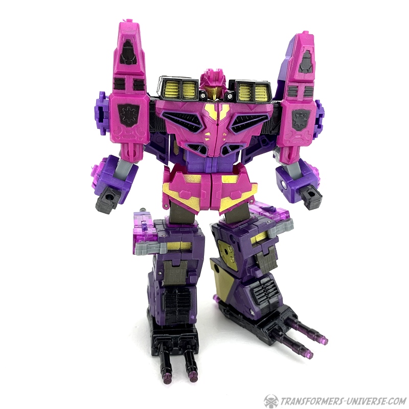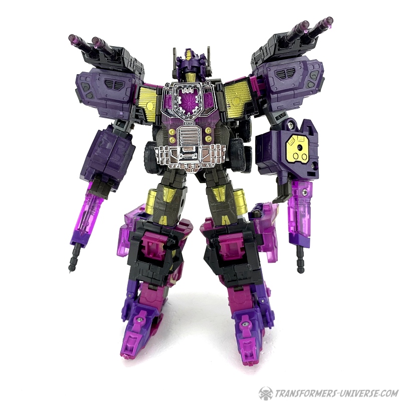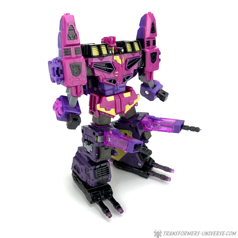 Seiber Omnicron: Much like it was with the original figures, the main attraction of these two here is that they can combine in two different configurations. Nexus Omnicron becomes the torso, Seiberion Blade splits into the four limbs. There is the Flight Mode version, where the combiner has huge wings and gun feet, and the Assault Mode, where the combiner has double-shoulder guns and missile launcher arms. Once again, no real difference to the original figures apart from size and color scheme.