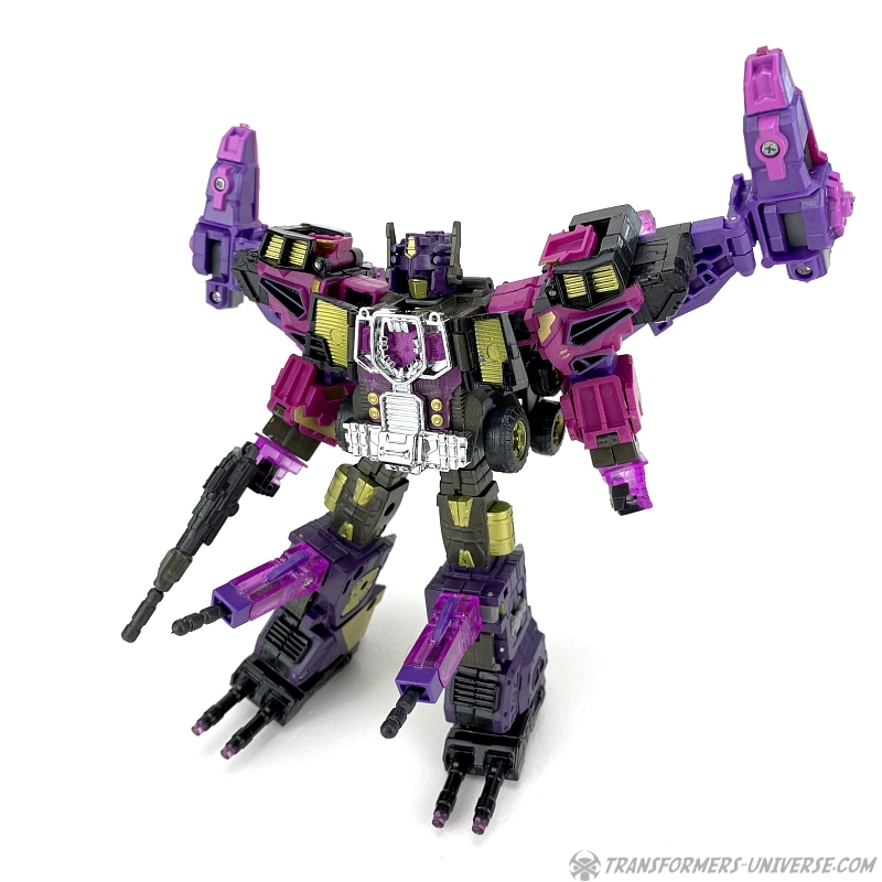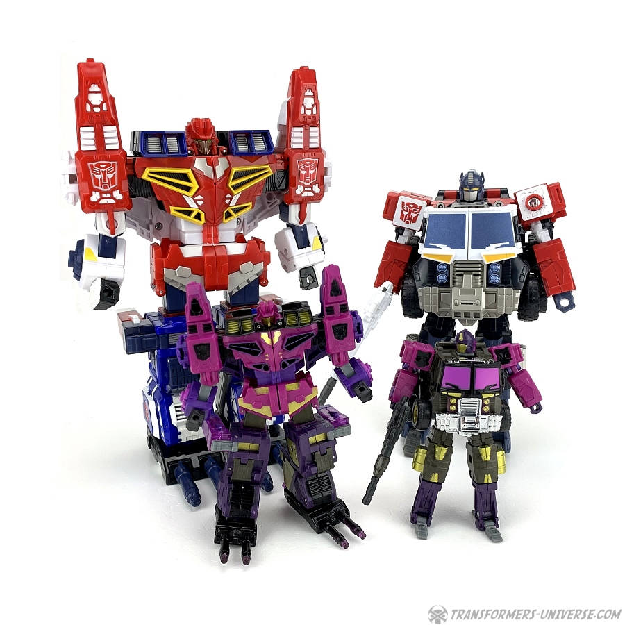 Prelude: Hey, remember when, in the Shattered Glass Universe, the evil Nexus Omnicron combined with Seiberion Blade into the mighty Seiber Omnicron to do… something? No? No surprise, really. Because what we have here is a pretty weird third party / knock off toy, based on Energon Optimus Prime and Wing Saber, all dressed up in Shattered Glass / Nemesis colors and shrunk down to Legends Scale. Intrigued? Let’s say go!