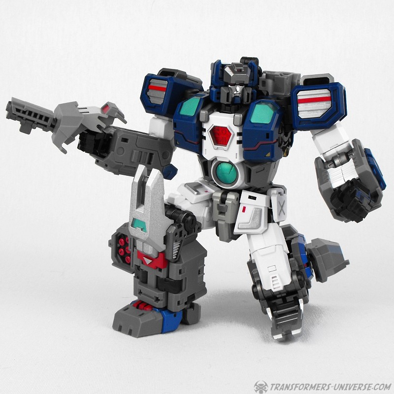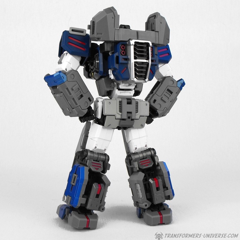 Robot Mode: Warden’s robot mode is mostly based on Fortress Maximus as he appears in the IDW comics. And he is one pretty robot, let me tell you that. The pictures can tell it better than I can, but I must stress that this is one of the most gorgeous Transformers robots I have ever seen. The look, the color mix, everything fits together really well. Warden is partially made from metal parts, so he’s got a nice, heavy feel to him and the metal legs give him a solid stance, too, so he’s got no balance problems.