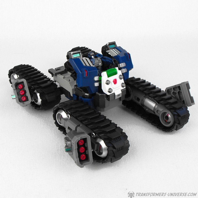 Tank Mode: I don’t think we’ve actually seen IDW Fortress Maximus transform into his alternate mode yet, but given that he has tank treads, it’s safe to assume that he becomes some tank-like vehicle. Anyway, Warden becomes just that. A tank-like vehicle. Basically the actual robot folds together into a more or less rectangular thing that attaches to the tank treads. The harness forms a kind-of cockpit up front where the Headmaster figure can sit and the big rifle gun goes on top. I didn’t really spend much time on this mode, to be honest, and am confident in naming it Warden’s worst mode. Not that there is anything really wrong here, but it’s really just there to give the tank treads a raison d’être.