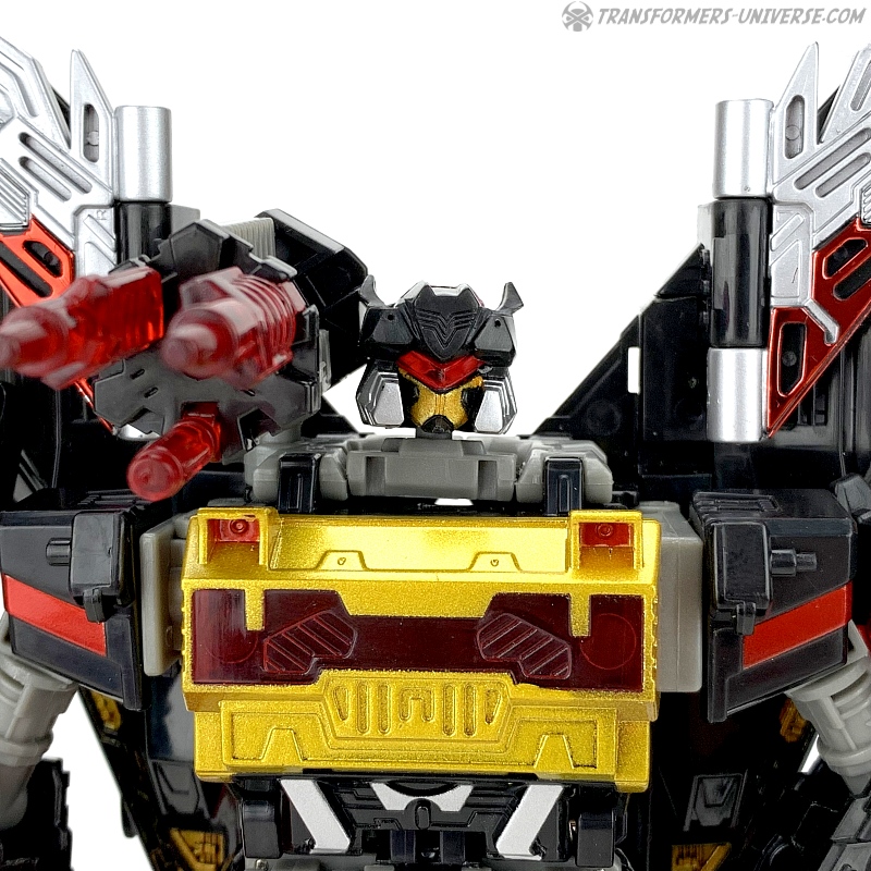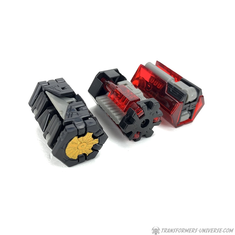 In terms of colors and details I really like Soundblaster. His main color is black, which does swallow some of the excellent detailing of this mode, but there are enough golden, silver, and red highlights to bring a lot of it to the forefront. Parts of his tape deck, arm shield and weapons are made from translucent red plastic, which looks very good.