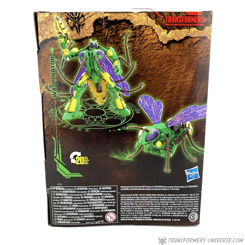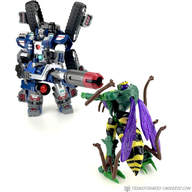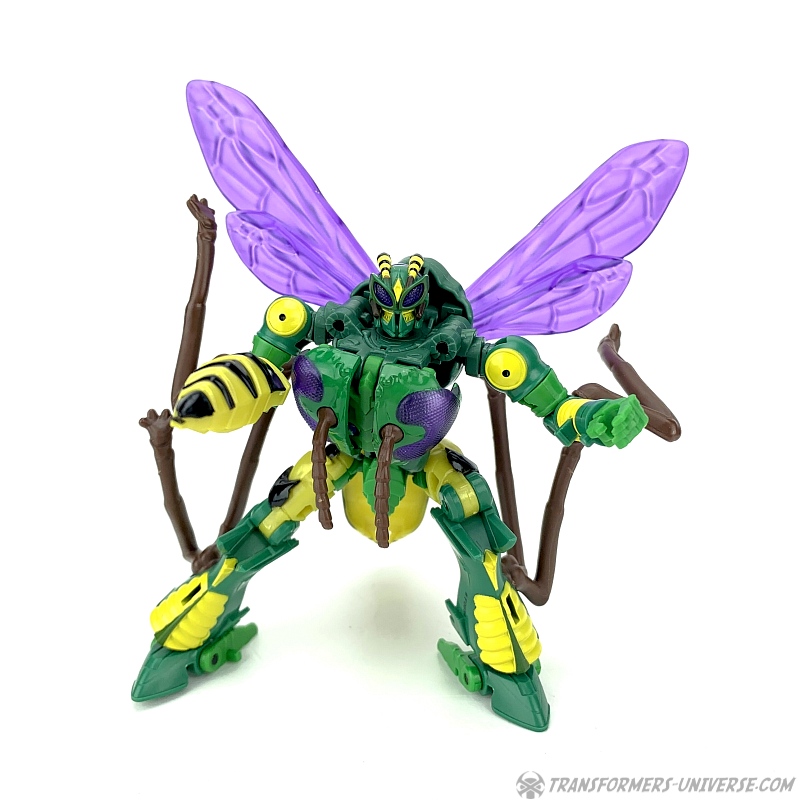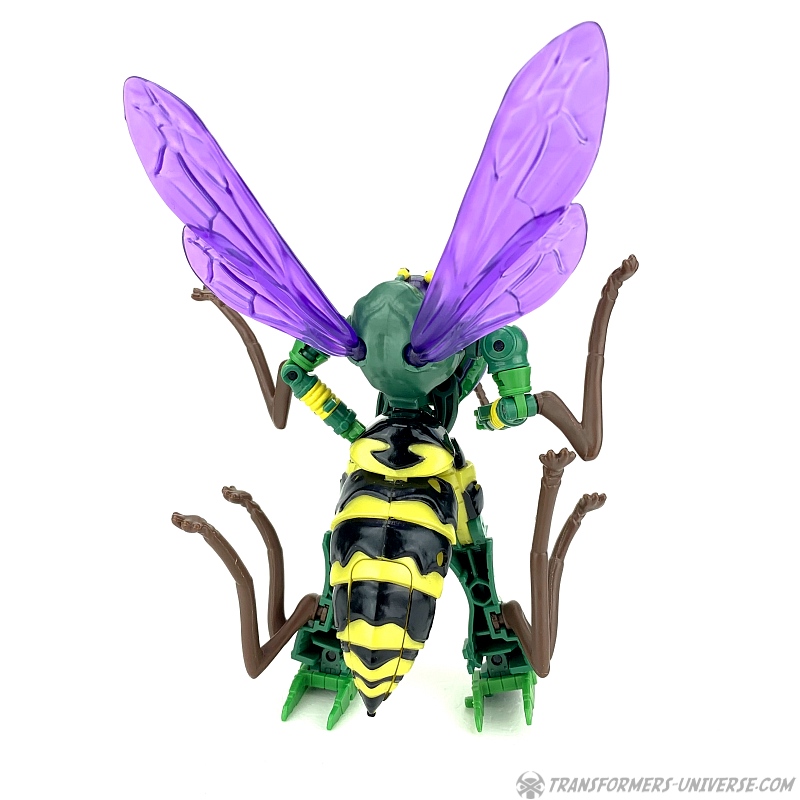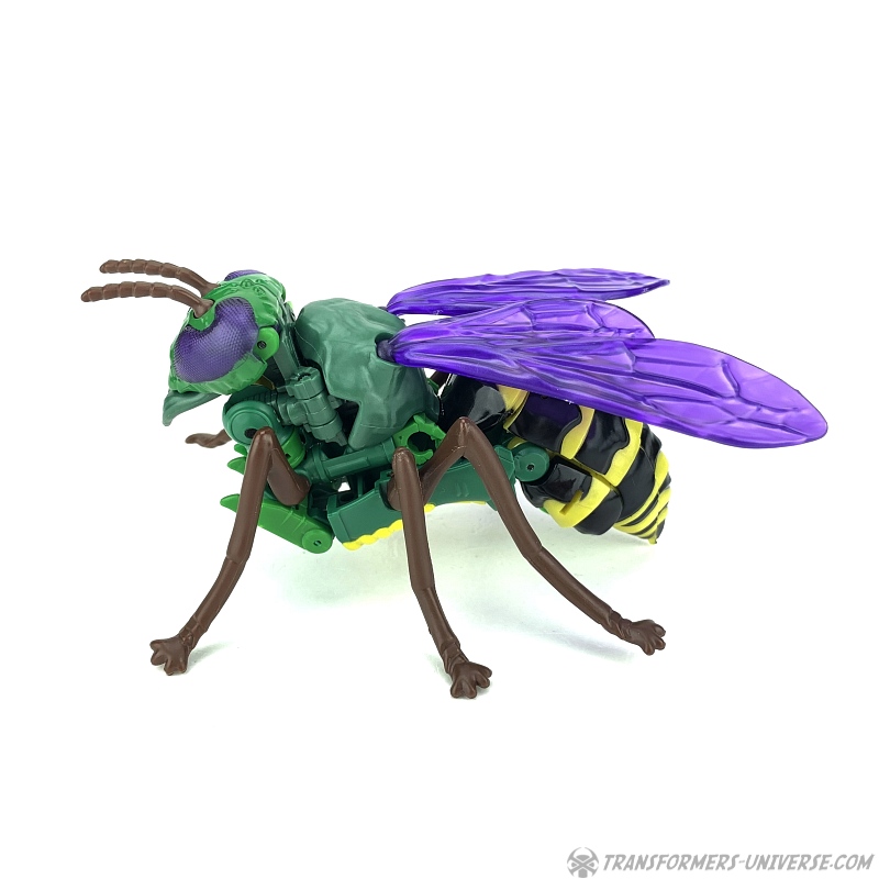 Alternate Mode: Unsurprisingly Waspinator still transforms into a (female) wasp. As mentioned above, the transformation is the exact same one as Thrilling 30 Waspinator, if you can transform one of them, the other is no problem. His weapon still becomes his tail stinger, his underbelly still doesn’t tab together all that solidly, and the resulting wasp looks pretty cool overall.