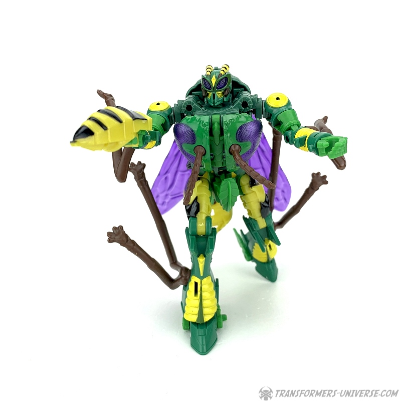 Not much more I can write here, to be honest. Again, very similar in basic design to Thrilling 30 Waspinator, yet different in every detail. The wings are on ball joints now, so you can easily position them every way you want to and while the insect legs are all one stiff piece, you can still achieve some posing variations by swiveling them, so the wasp is higher off the ground or lower. That’s pretty much it, though. Waspinator becomes a good-looking wasp, so mission accomplished.