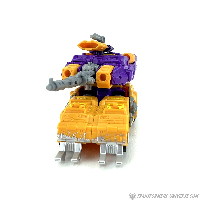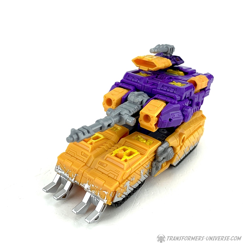 Otherwise, a nice tank mode. Not exceptional, but good. The dreaded battle damage deco that was sometimes used rather excessively on some Siege figures actually works pretty well here, being situated along the tank tracks, were it makes sense to show some wear. Nicely done. So bottom line: a good tank mode.