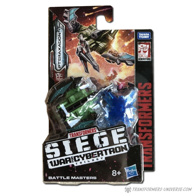 Prelude: The Siege line is full of familiar characters from days gone by, including quite a few Targetmasters (now called Battle Masters) that should have come with the Titans Return figures. It also includes, though, a few out-there characters the likes of which we haven’t seen since Takara’s Arms Micron line. Battle Masters with non-standard robot modes, such as one that looks like a Pteranodon and is called… Pteraxadon. Not sure it’s the weirdest Transformers name ever, but it’s a contender. Here we go!